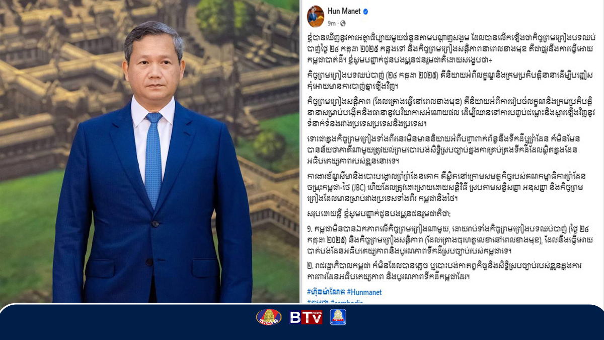 TOP NEWS |សម្ដេចធិបតី៖កម្ពុជាមិនបានឯកភាពលើកិច្ចព្រមព្រៀងណាមួយ ដែលនឹងធ្វើឱ្យបាត់បង់ដែនអធិបតេយ្យភាព និងបូរណភាពទឹកដីស្របច្បាប់របស់កម្ពុជាទេ