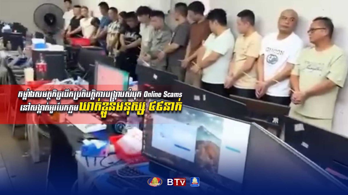 ​កម្លាំងសមត្ថកិច្ចបើកប្រតិបត្តិការបង្ក្រាបសំបុក Online Scams នៅសង្កាត់​អូរបែក​ក្អម​ឃាត់​ខ្លួន​មនុស្ស ​៤៩នាក់