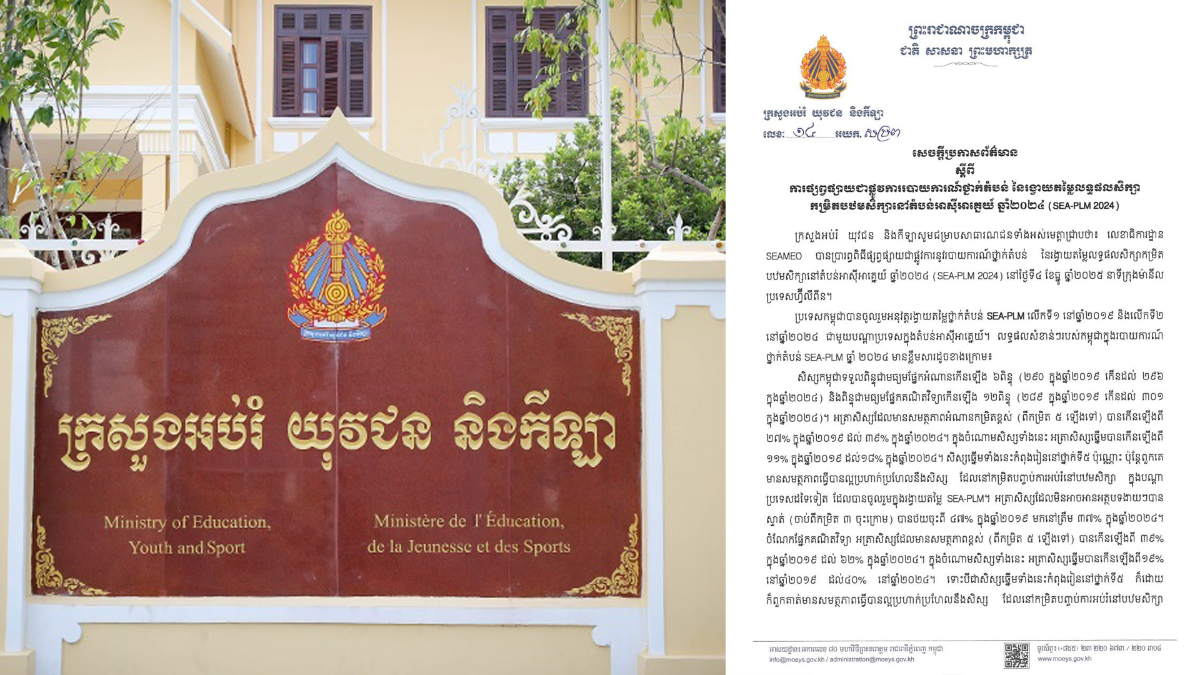 សិស្សថ្នាក់ទី៥ កម្ពុជា មានសមត្ថភាពប្រហាក់ប្រហែលសិស្សបញ្ចប់បឋមសិក្សា នៅតំបន់អាស៊ីអាគ្នេយ៍