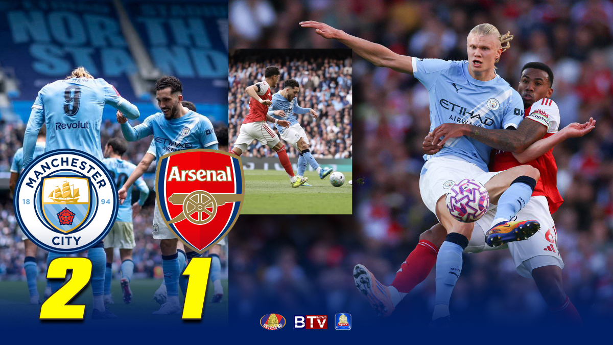 ​Manchester City កាត់បន្ថយការនាំមុខរបស់ Arsenal មកត្រឹមបីពិន្ទុក្រោយឈ្នះនៅទឹកដី Etihad ២-១