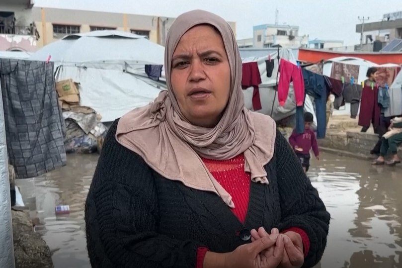 ជនប៉ាឡេស្ទីននៅតំបន់ាហ្កាហ្សាភ្ញាក់ឡើងឃើញសំពត់តង់ជោគជាំដោយទឹក បន្ទាប់ពីភ្លៀងធ្លាក់កាលពីយប់