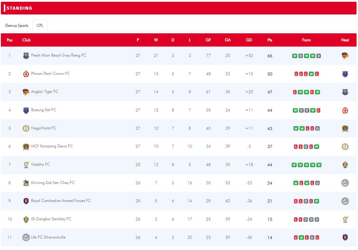 ទោះបីក្រុមជើងឯក ត្រូវបានរកឃើញ តែការប្រកួតប្រជែងលីគកំពូលកម្ពុជា ឆ្នាំ២០២៥/២៦ នៅតែមានកម្រិតខ្ពស់ ជាទីទាក់ទាញកាន់តែខ្លាំងសម្រាប់អ្នកគាំទ្រ ពិសេសជំនួបរវាងបេក្ខភាព Top-6 ស្របពេលនៅសល់ ៣សប្ដាហ៍ទៀតនឹងត្រូវបញ្ចប់រដូវកាល។