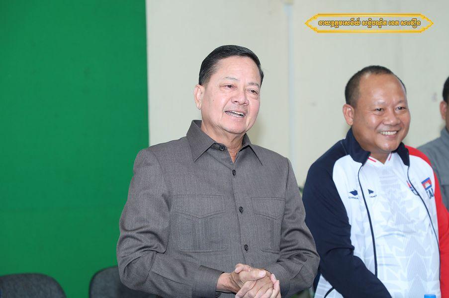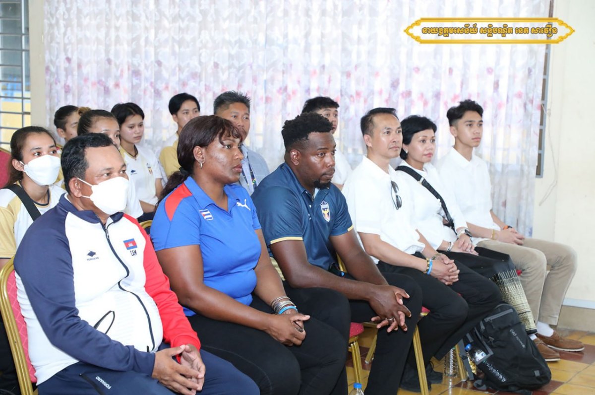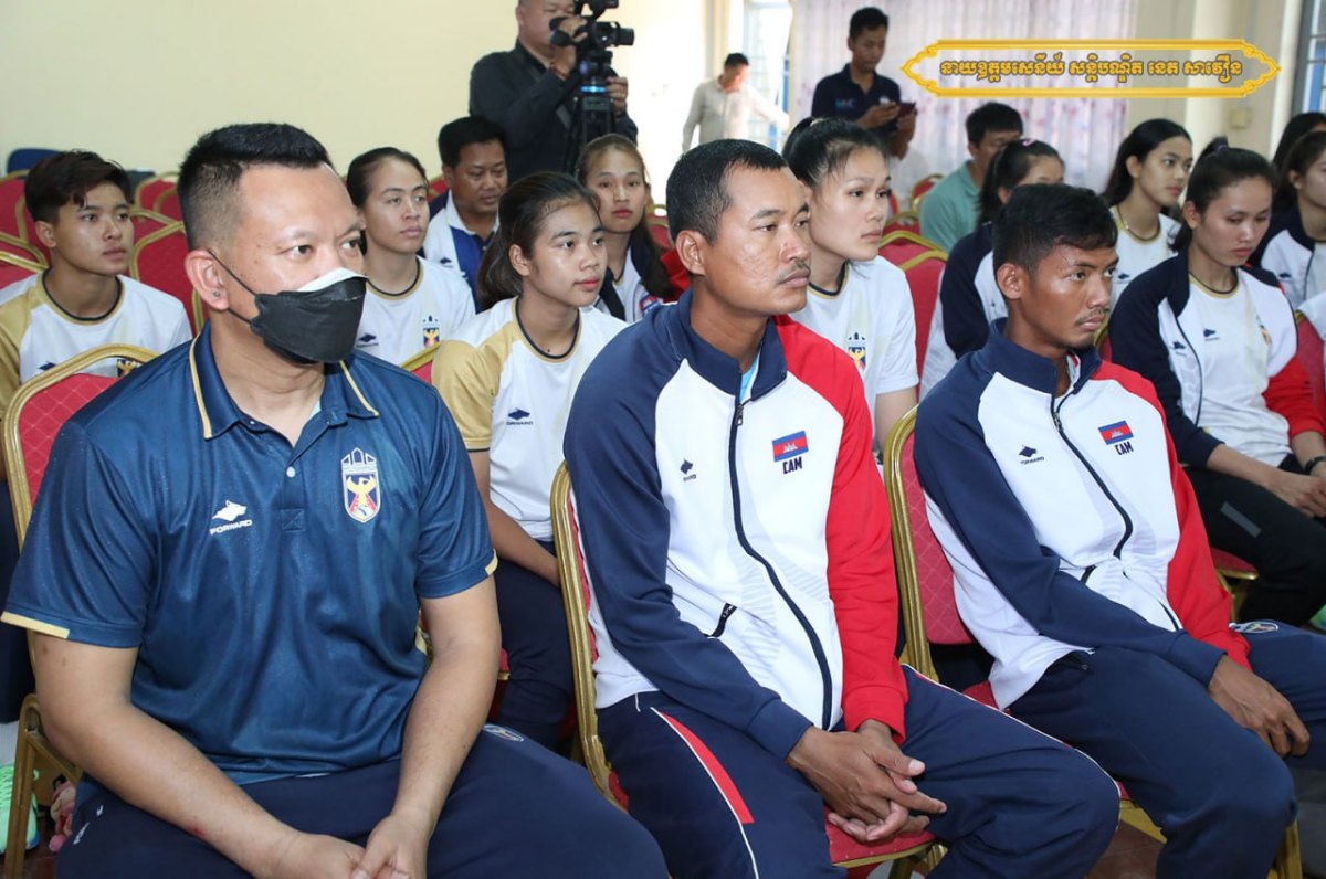 ភ្នំពេញ៖ ឯកឧត្តម នាយឧត្តមសេនីយ៍ សន្តិបណ្ដិត នេត សាវឿន អគ្គស្នងការនគរបាលជាតិ និងជាប្រធានសហព័ន្ធកីឡាបាល់ទះកម្ពុជា នារសៀលថ្ងៃទី១៨ ខែឧសភា ឆ្នាំ២០២៣នេះ នៅវិមានពហុកីឡាដ្ឋានជាតិអូឡាំពិក បានអញ្ជើញជួបសំណេះសំណាលសាកសួរសុខទុក្ខ និងផ្តល់ថវិកាលើកទឹកចិត្តក្នុងម្នាក់ៗ ១០០០ ដុល្លារ ដល់ គ្រូបង្វឹក ក្រុមកីឡាករ-កីឡាការិនីបាល់ទះឆ្នេរខ្សាច់ និងក្រុមកីឡាការិនីបាល់ទះក្នុងសាលជម្រើសជាតិកម្ពុជា ដែលទើបបញ្ចប់បេសកកម្មចូលរួមការប្រកួតក្នុងព្រឹត្តិការណ៍កីឡាអាស៊ីអាគ្នេយ៍ លើកទី៣២ ដែលកម្ពុជាធ្វើជាម្ចាស់ផ្ទះ៕