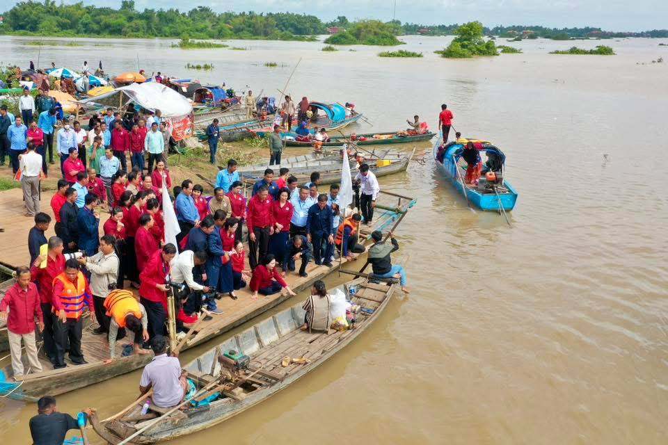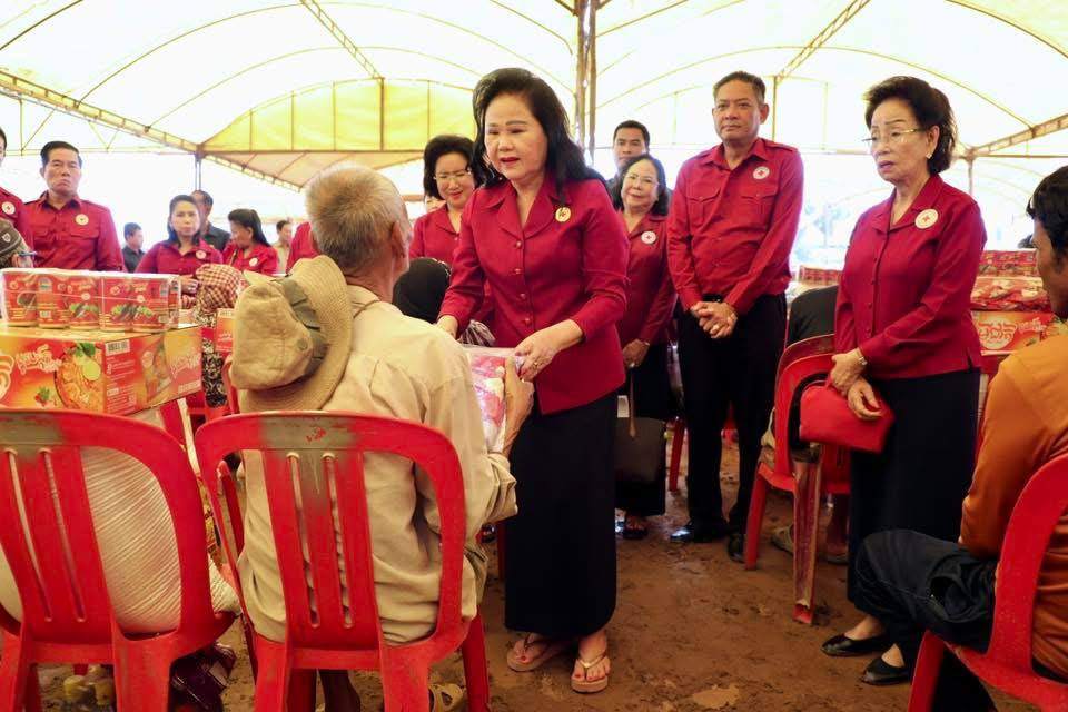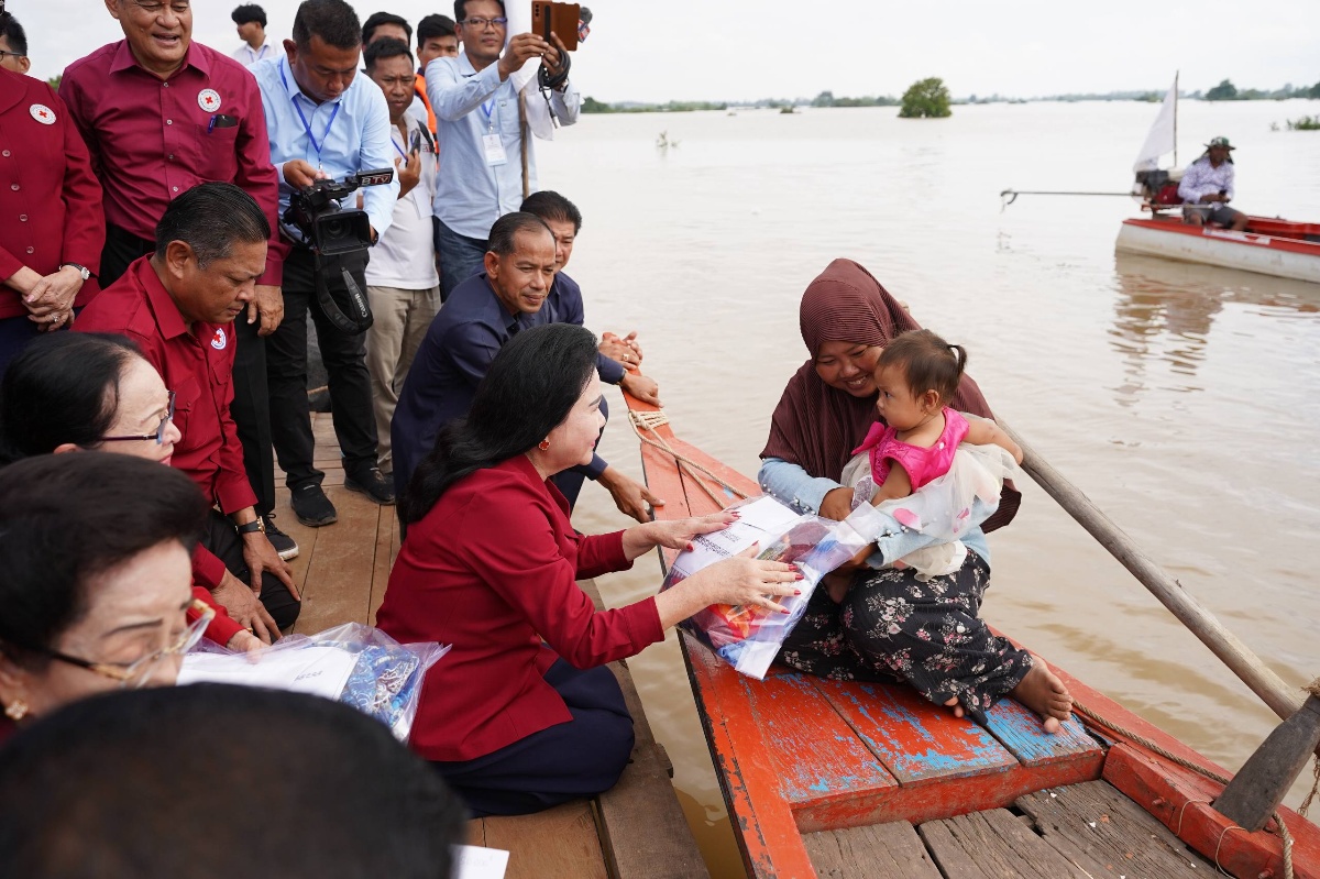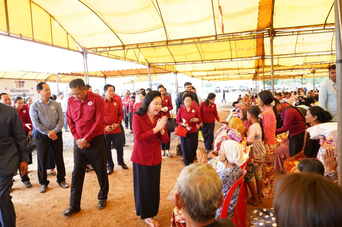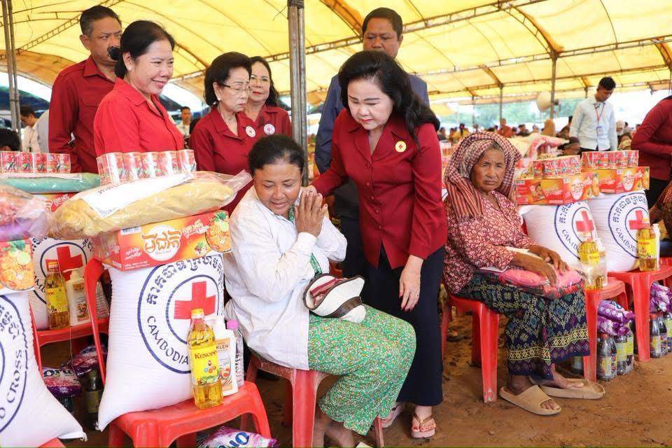 បន្ទាប់ពីបានទទួលព្រះរាជទ្រព្យដ៏ឧត្តុង្គឧត្តមចំនួន ២ម៉ឺនដុល្លារអាម៉េរិក របស់សម្តេចព្រះមហាក្សត្រី ព្រះវររាជមាតាជាតិខ្មែរ ព្រះប្រធានកិត្តិយសកាកបាទក្រហមកម្ពុជា ជាទីសក្ការៈដ៏ខ្ពង់ខ្ពស់បំផុត ភ្លាមៗ នៅព្រឹកថ្ងៃអាទិត្យទី៥ ខែតុលា ឆ្នាំ២០២៥នេះ សម្តេចកិត្តិព្រឹទ្ធបណ្ឌិត ប៊ុន រ៉ានី ហ៊ុនសែន ប្រធានកាកបាទក្រហមកម្ពុជា បានចាត់ចែងព្រះរាជទ្រព្យដ៏ឧត្តុង្គឧត្តមនេះទិញស្បៀង និងសម្ភារ យកមកចែកជូនប្រជានុរាស្ត្រងាយរងគ្រោះបំផុត ដែលបានទទួលរងគ្រោះដោយទឹកជំនន់ចំនួន ១.៨០០គ្រួសារ មកពីភូមិចំនួន១៤ ក្នុងឃុំចំនួន៣ នៃស្រុកត្បូងឃ្មុំ ក្នុងនោះ ឃុំបឹងព្រួលចំនួន ២០០គ្រួសារ, ឃុំជីរោទិ៍ទី១ ចំនួន ៨២៨គ្រួសារ និងឃុំទន្លេបិទចំនួន ៧៧២គ្រួសារ ហើយដែលពិធីជួបសំណេះសំណាល និងចែកអំណោយនេះធ្វើឡើងនៅទីទួលសុវត្ថិភាពឧកញ៉ា វ័ន ប៊ុនថៃ ស្ថិតក្នុងភូមិទន្លេបិទលើ ឃុំទន្លេបិទ ស្រុកត្បូងឃ្មុំ ខេត្តត្បូងឃ្មុំ។