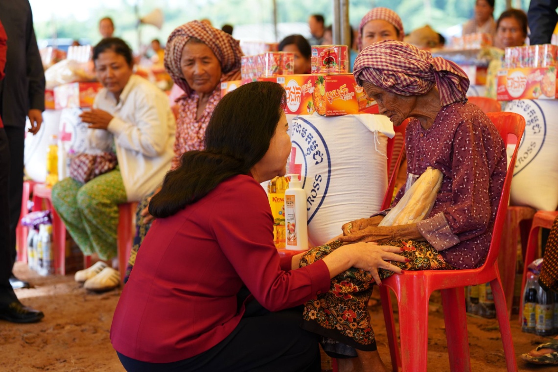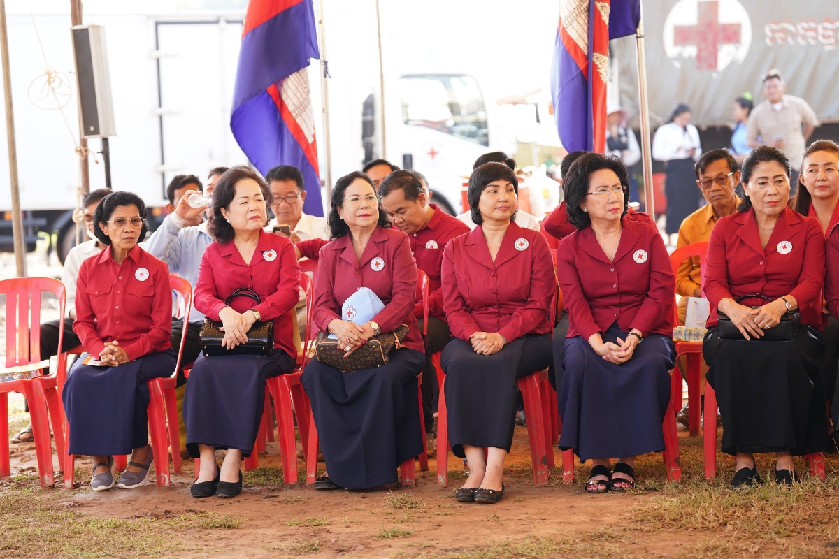 ក្នុងឱកាសនោះ សម្តេចកិត្តិព្រឹទ្ធបណ្ឌិត បាននាំនូវព្រះរាជបន្ទូលនិងព្រះសវណីយ៍ផ្តាំផ្ញើសួរសុខទុក្ខ ប្រកបដោយព្រះរាជហឫទ័យក្តីនឹករលឹក និងសេចក្តីស្រឡាញ់ដ៏ជ្រាលជ្រៅ ពីព្រះករុណា ព្រះមហាក្សត្រ ជាអម្ចាស់ជីវិតលើត្បូង និងសម្តេចព្រះមហាក្សត្រី ព្រះវររាជមាតាជាតិខ្មែរ ព្រះប្រធានកិត្តិយសកាកបាទក្រហមកម្ពុជា ជាទីគោរពសក្ការៈដ៏ខ្ពង់ខ្ពស់បំផុត ដែលជានិច្ចកាល ព្រះអង្គទាំងទ្វេតែងតែគិតគូរពីសុខទុក្ខប្រជានុរាស្ត្ររបស់ព្រះអង្គគ្រប់ពេលវេលា និងនៅគ្រប់ទីកន្លែង។ ជាក់ស្ដែង កាលពីថ្ងៃទី៣ ខែតុលា ឆ្នាំ២០២៥កន្លងទៅនេះ សម្តេចព្រះវររាជមាតាជាតិខ្មែរ បានសព្វព្រះរាជហឫទ័យ ប្រោសព្រះរាជទាននូវព្រះរាជទ្រព្យចំនួន ២ម៉ឺនដុល្លារអាម៉េរិក សម្រាប់យកមកចែកជូនប្រជាពលរដ្ឋ ដែលរងផលប៉ះពាល់ដោយទឹកជំនន់នៅក្នុងស្រុកត្បូងឃ្មុំ ខេត្តត្បូងឃ្មុំរបស់យើងនេះ។