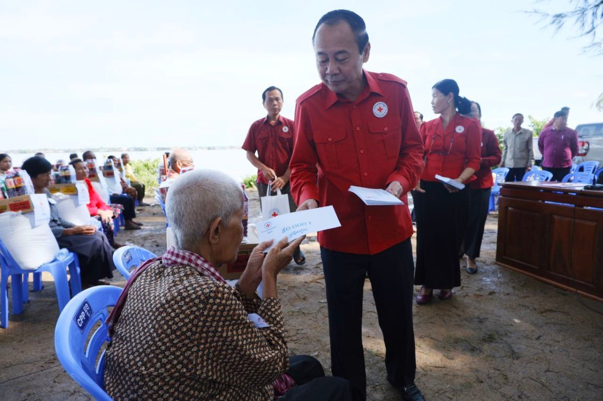ថ្លែងក្នុងឱកាសនោះ ឯកឧត្តម វ៉ា ថន អភិបាលខេត្ត បានពាំនាំនូវការផ្តាំផ្ញើរសួរសុខទុក្ខ និងក្តីនឹករលឹកពីសំណាក់សម្តេចកិត្តិព្រឹទ្ធបណ្ឌិត ប៊ុន រ៉ានី ហ៊ុនសែន ជាមួយនឹងជីវភាពរស់នៅប្រចាំថ្ងៃរបស់ប្រជាជន សម្តេចតែងតែយកចិត្តទុកដាក់គិតគូរ ពីសុខទុក្ខរបស់បងប្អូនប្រជាជនងាយរងគ្រោះ ដោយគ្រោះមហន្តរាយផ្សេងៗ ដោយគ្មានការរើសអើងអ្វីឡើយ តាមពាក្យស្លោក «ទីណាមានទុក្ខលំបាក ទីនោះមានកាកបាទក្រហមកម្ពុជា»។