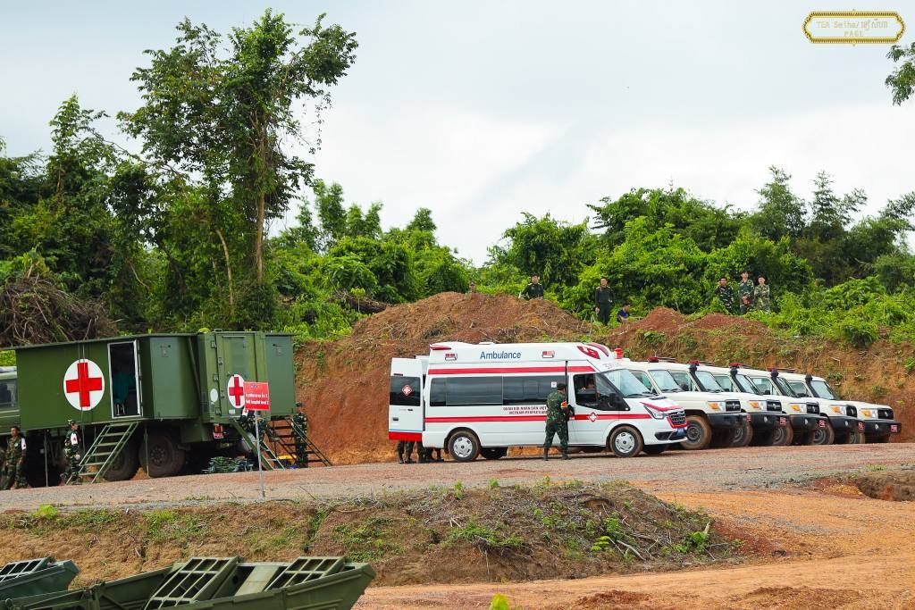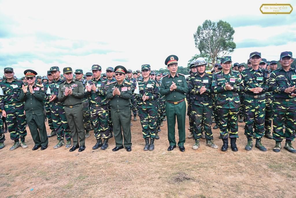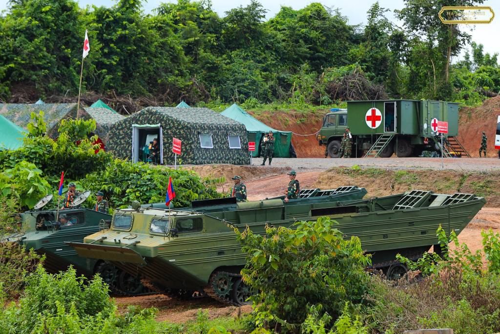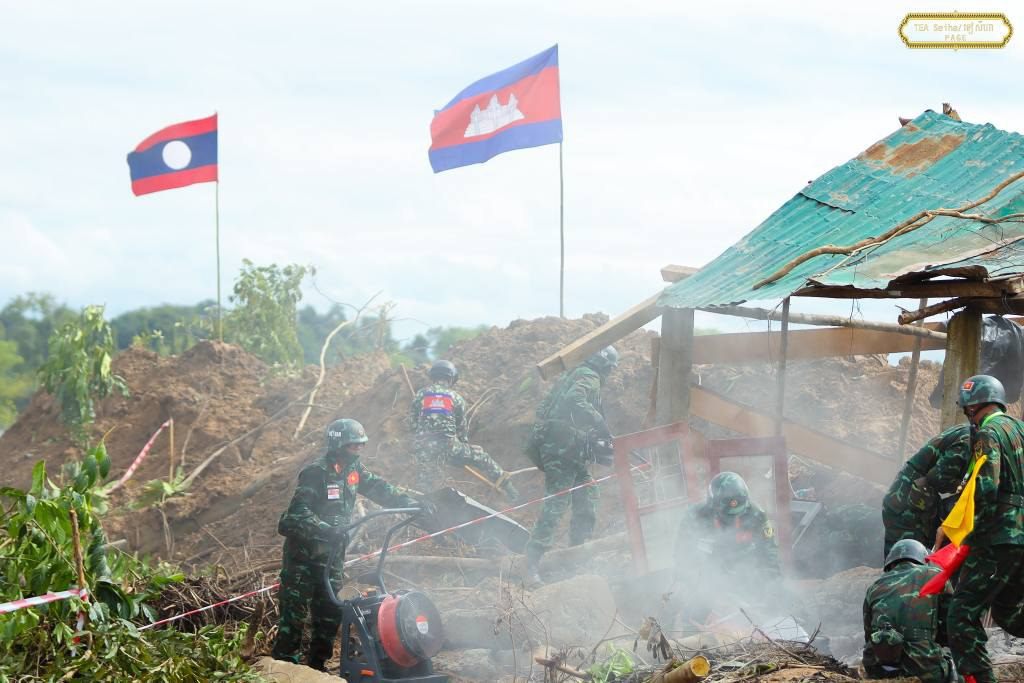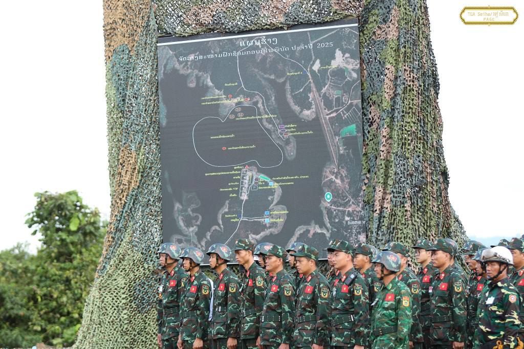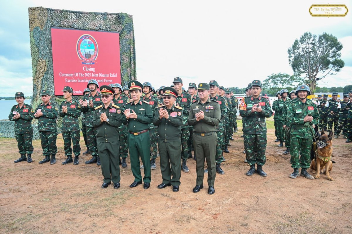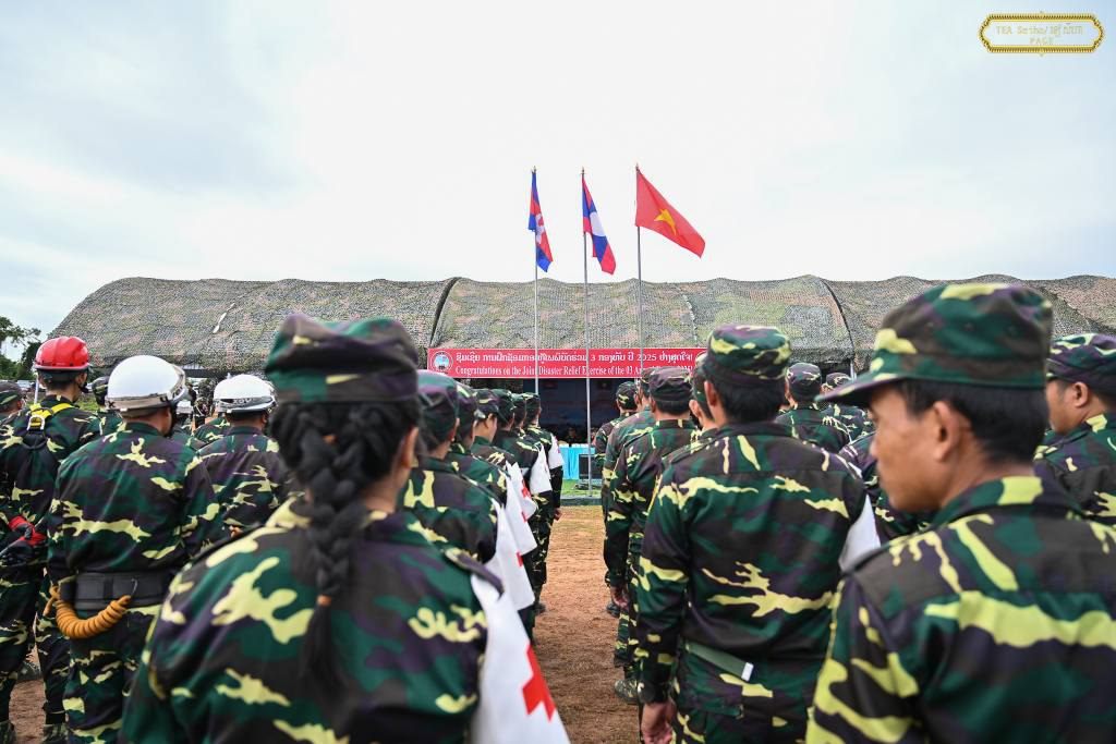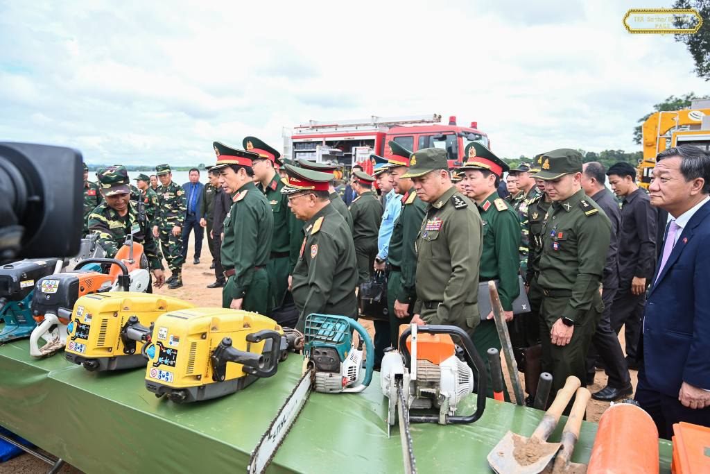 ឯកឧត្តម នាយឧត្តមសេនីយ៍ ទៀ សីហា ឧបនាយករដ្ឋមន្ត្រី រដ្ឋមន្ត្រីក្រសួងការពារជាតិ ដឹកនាំគណៈប្រតិភូជាន់ខ្ពស់ ក្រសួងការពារជាតិ ចូលរួម លំហាត់ហ្វឹកហ្វឺនសង្គ្រោះគ្រោះមហន្តរាយរួមគ្នារវាងកងទ័ព៣ប្រទេស កម្ពុជា-ឡាវ-វៀតណាម ប្រចាំឆ្នាំ២០២៥ ក្រោមប្រធានបទ "ជួយសង្គ្រោះជនរងគ្រោះដោយទឹកជំនន់ និងគ្រោះរអិលបាក់ដី" នៅទីលានហ្វឹកហ្វឺន សង្គ្រោះគ្រោះមហន្តរាយ អាងណាំហ៊ុម សាធារណរដ្ឋប្រជាធិបតេយ្យប្រជាមានិតឡាវ។