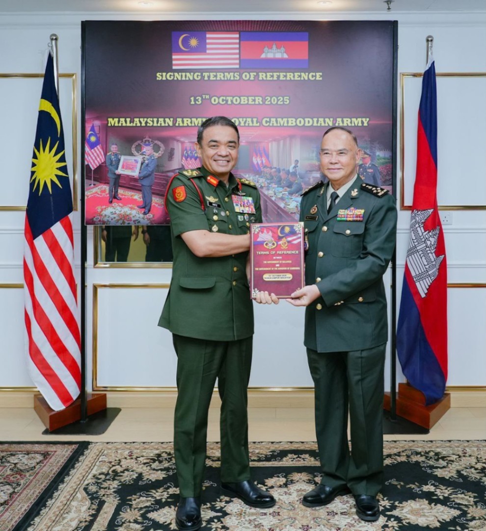 ដោយមានការអនុញ្ញាតពី ក្រសួងការពារជាតិ និង អគ្គបញ្ជាការ ឯកឧត្តម នាយឧត្តមសេនីយ៍ ម៉ៅ សុផាន់ អគ្គមេបញ្ជាការរង នៃកងយោធពលខេមរភូមិន្ទ មេបញ្ជាការកងទ័ពជើងគោក បានអញ្ជើញដឹកនាំប្រតិភូទៅបំពេញទស្សនកិច្ចផ្លូវការនៅប្រទេសម៉ាឡេស៊ី ចាប់ពីថ្ងៃទី១៣ ដល់ថ្ងៃទី១៦ ខែតុលា ឆ្នាំ២០២៥។
