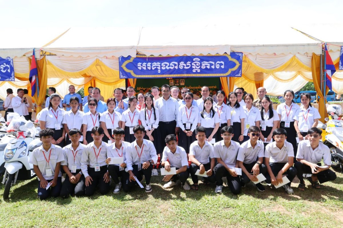 ខេត្តកណ្តាល៖ នាព្រឹកថ្ងៃសុក្រ ទី១៧ ខែតុលា ឆ្នាំ២០២៥ ឯកឧត្តម ប៉េង ពោធិ៍នា រដ្ឋមន្ត្រីក្រសួងសាធារណការ និងដឹកជញ្ជូន និងជាប្រធានក្រុមការងាររាជរដ្ឋាភិបាលចុះមូលដ្ឋានស្រុកកោះធំ និងស្រុកស្អាង បានអញ្ជើញជាអធិបតីក្នុងពីធីសំណេះសំណាលជាមួយ លោកគ្រូ អ្នកគ្រូ និងផ្តល់រង្វាន់ជ័យលាភីជូនសិស្សប្រឡងជាប់សញ្ញាបត្រ មធ្យមសិក្សាទុតិយភូមិនិទ្ទេស(A) សម័យប្រឡង ២៨ សីហា ២០២៥ ក្នុងស្រុកកោះធំ និងស្រុកស្អាង ដោយមានការចូលរួមពី ឯកឧត្តម លោកជំទាវ អនុប្រធានក្រុមការងាររាជរដ្ឋាភិបាលចុះមូលដ្ឋានស្រុកកោះធំ និងស្រុកស្អាង លោក លោកស្រី ក្រុមប្រឹក្សាស្រុក គណៈអភិបាល ក្រុមប្រឹក្សាឃុំ នៃស្រុកកោះធំ និងស្រុកស្អាង មន្ត្រីរាជការ លោកគ្រូ អ្នកគ្រូ និងសិស្សានុសិស្សជាច្រើនរូបទៀត។