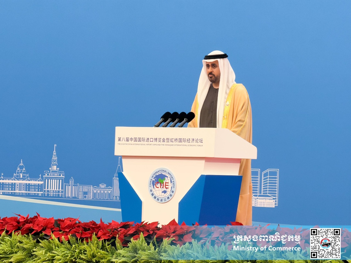 នាព្រឹកថ្ងៃពុធ ទី៥ ខែវិច្ឆិកា ឆ្នាំ២០២៥ ឯកឧត្តម សំហេង បូរ៉ា រដ្ឋលេខាធិការក្រសួងពាណិជ្ជកម្ម នៃព្រះរាជាណាចក្រកម្ពុជា បានអញ្ជើញចូលរួមក្នុងកម្មវិធីសម្ពោធជាផ្លូវការនៃព្រឹត្តិការណ៍ «ពិព័រណ៍នាំចូលអន្តរជាតិចិន លើកទី៨ - 8th China International Import Expo» នៅមជ្ឈមណ្ឌលសន្និបាត និងពិព័រណ៍ជាតិសៀងហៃ ទីក្រុងសៀងហៃ សាធារណរដ្ឋប្រជាមានិតចិន។
