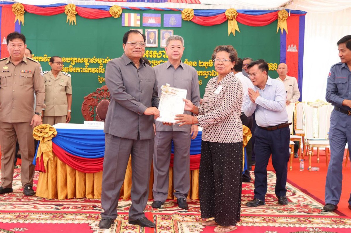ឯកឧត្តម អភិបាលខេត្ត បានបញ្ជាក់ថា ការចែកប័ណ្ណកម្មសិទ្ធិដីធ្លី ជូនប្រជាពលរដ្ឋនាពេលនេះ គឺជាការរួមចំណែកយ៉ាងសំខាន់ ក្នុងការដោះស្រាយបញ្ហាទំនាស់ដីធ្លី និងជាការផ្ដល់ឱ្យប្រជាពលរដ្ឋមានសិទ្ធិកម្មកាន់កាប់ដីធ្លីរបស់ខ្លួនបានត្រឹមត្រូវស្របតាមច្បាប់ ហើយការទទួលបានប័ណ្ណកម្មសិទ្ធិប្រើប្រាស់ស្របច្បាប់របស់បងប្អូនប្រជាពលរដ្ឋនៅពេលនេះ បានស្ដែងចេញឱ្យឃើញពីការគិតគូរយ៉ាងហ្មត់ចត់របស់រាជរដ្ឋាភិបាល ដែលមានសម្តេចធិបតី ហ៊ុន ម៉ាណែត ជានាយករដ្ឋមន្រ្តី នៃព្រះរាជាណាចក្រកម្ពុជា ដែលបាន និងកំពុងអនុវត្តយ៉ាងសកម្មលើគោលនយោបាយដីធ្លី ជូនដល់ប្រជាពលរដ្ឋ និងដើម្បីផលប្រយោជន៍របស់ប្រជាពលរដ្ឋយ៉ាងពិតប្រាកដ។
