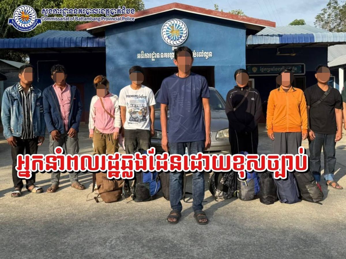 បើតាមស្នងការដ្ឋាននគរបាលខេត្តបាត់ដំបង ឱ្យដឹងបន្ថែមថាជនសង្ស័យមានឈ្មោះ អ៊ឹម សុវណ្ណ ភេទប្រុស អាយុ ៤២ ឆ្នាំបានឃាត់ខ្លួន មានទីលំនៅភូមិជ្រៃកោង សង្កាត់ស្លាកែតក្រុងបាត់ដំបង ខេត្តបាត់ដំបងជាអ្នកបើករថយន្តបានធ្វើសកម្មភាពទាក់ទងនាំពលរដ្ឋខ្មែរចំនួន០៧នាក់បម្រុងនាំឆ្លងដែនពីប្រទេសកម្ពុជាចូល ទៅក្នុងប្រទេសថៃ ឆ្លងអូរព្រំដែនកម្ពុជា-ថៃ ជាប់ភូមិសាស្រ្តស្រុកសំពៅលូន ខេត្តបាត់ដំបងដោយយកប្រាក់ថ្លៃជូន ក្នុងម្នាក់ៗចំនួន ៨.០០០បាត(ប្រាំបីពាន់បាត) ។