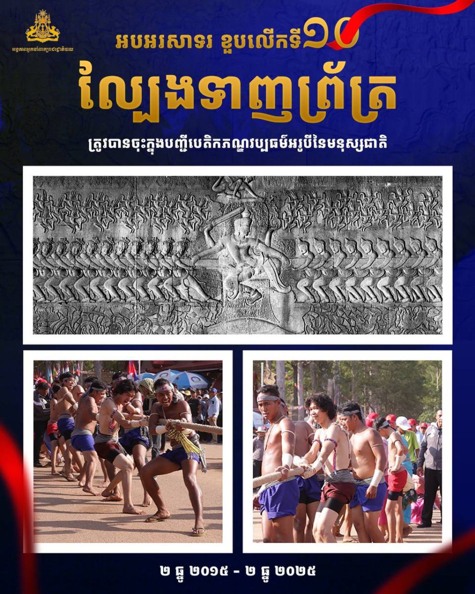 ថ្ងៃទី២ ខែធ្នូ ឆ្នាំ២០២៤ ជាខួបលើកទី១០ នៃការដាក់បញ្ចូលល្បែងទាញព្រ័ត្រ ក្នុងបញ្ជីបេតិកភណ្ឌវប្បធម៌អរូបី នៃមនុស្សជាតិរបស់អង្គការយូណេស្កូ កាលពីថ្ងៃទី២ ខែធ្នូ ឆ្នាំ២០១៥ កន្លងទៅ នៅទីក្រុងវិនឌុក ប្រទេសណាមីប៊ី។