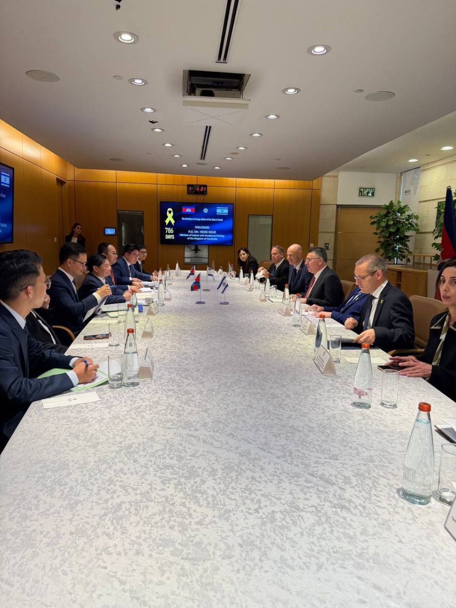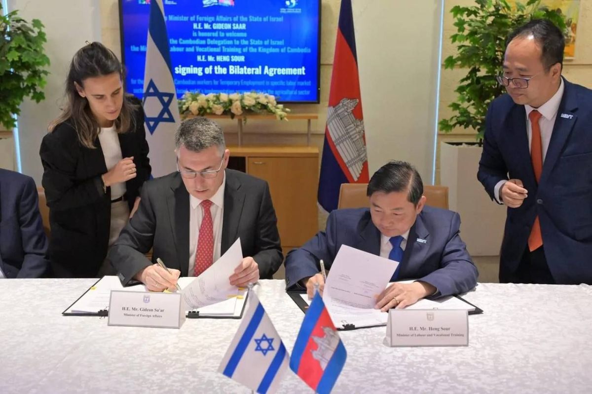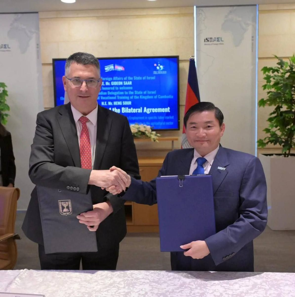 ហ៊្សេរុយសាឡិម៖ នៅរសៀលថ្ងៃទី១ ខែធ្នូ ឆ្នាំ២០២៥ ឯកឧត្តម ហេង សួរ រដ្ឋមន្ត្រីក្រសួងការងារ និងបណ្តុះបណ្តាលវិជ្ជាជីវៈ និងឯកឧត្តម ហ្គីដន សាអា (Gideon Sa'ar) រដ្ឋមន្រ្តីក្រសួងការបរទេស នៃរដ្ឋអ៊ីស្រាអែល បានចុះហត្ថលេខាលើកិច្ចព្រមព្រៀងស្តីពីកិច្ចសហប្រតិបត្តិការលើវិស័យការងារ ដែលបើកទំព័រដំបូងនៃការផ្លាស់ប្តូរកម្លាំងពលកម្មជាមួយគ្នាទៅវិញទៅមក ដែលនឹងកំណត់នូវយន្តការ និងអាចផ្តល់ឱកាសដល់ប្រជាពលរដ្ឋកម្ពុជាអាចពិចារណាក្នុងការទៅធ្វើការងារលើវិស័យកសិកម្ម និងវិស័យផ្សេងទៀតនៅពេលដ៏ខ្លីខាងមុខនេះ។