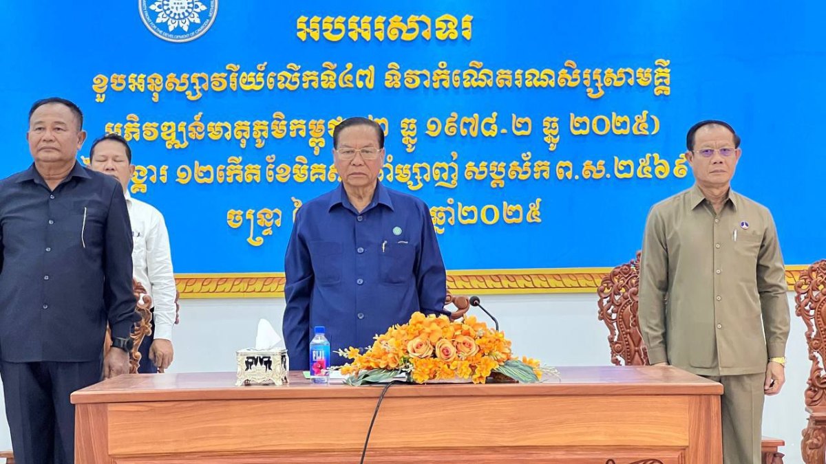 ឯកឧត្តម ម៉ឹង សំផន រដ្ឋលេខាធិការក្រសួងការពារជាតិ អនុប្រធានក្រុមការងារចុះជួយខេត្តស្វាយរៀង និងជាប្រធានក្រុមការងារចុះជួយស្រុកចន្ទ្រា ខេត្តស្វាយរៀង នៅថ្ងៃទី២ ខែធ្នូ ឆ្នាំ២០២៥នេះ បានដឹកនាំក្រុម ការងារគណបក្សប្រជាជនកម្ពុជា នៅស្រុកចន្ទ្រា ខេត្តស្វាយរៀងប្រារព្ធពិធីអបអរសាទរខួបអនុស្សាវរីយ៍ លើកទី៤៧ ទិវាកំណើតរណសិរ្សសាមគ្គីអភិវឌ្ឍន៍មាតុភូមិកម្ពុជា២ធ្នូ។
