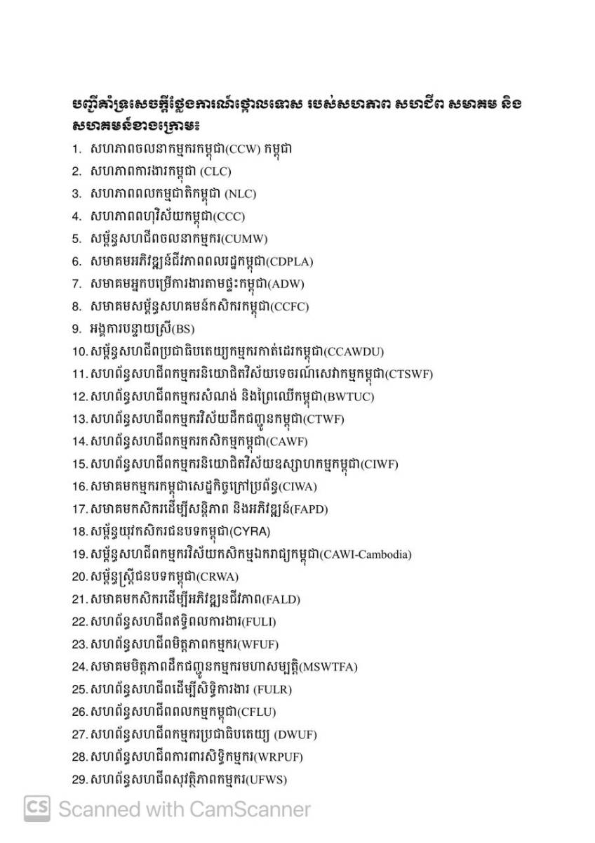 នៅថ្ងៃទី ១២ ខែធ្នូ ឆ្នាំ២០២៥ នេះ សហភាព សហព័ន្ធសហជីព អង្គការសង្គមស៊ីវិល សមាគម និងសហគមន៍ ២២៤ស្ថាប័ន បានចេញសេចក្តីថ្លែងការណ៍ ស្ដីពី ការបន្តអំពើឈ្លានពានដោយអាវុធគ្រប់ទម្រង់ដែលប្រព្រឹត្តិដោយកងកម្លាំងថៃ វាយប្រហារមកលើកម្ពុជា ដោយបាន ជំរុញយ៉ាងខ្លាំងក្លាដល់សហគមន៍អន្តរជាតិ រួមមាន អង្គការសហប្រជាជាតិ ស្ថាប័ន សិទ្ធិមនុស្សអន្តរជាតិ និងចលនាសហជីពសកល ឱ្យចាត់វិធានការភ្លាមៗ និងសម្របសម្រួលគ្នាដើម្បី បញ្ឈប់អំពើឈ្លានពានដោយអាវុធរបស់ថៃប្រឆាំងនឹងកម្ពុជា។