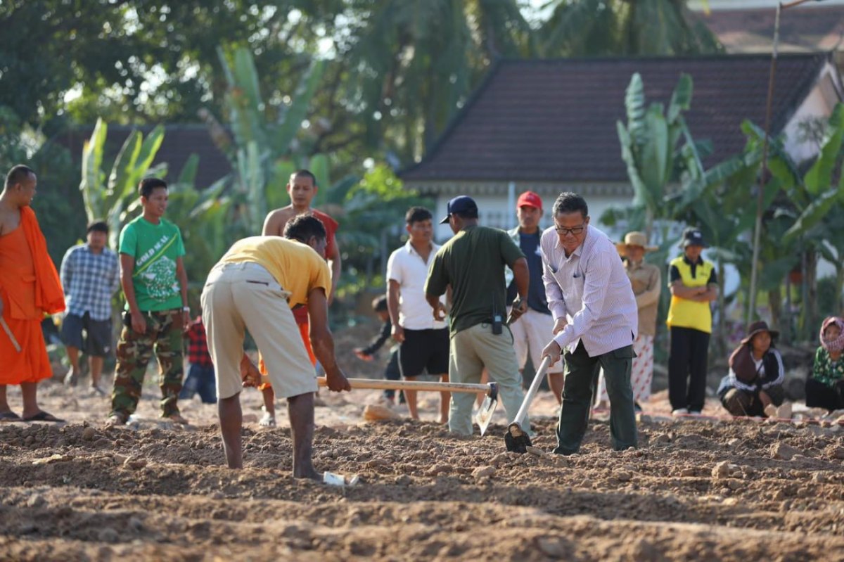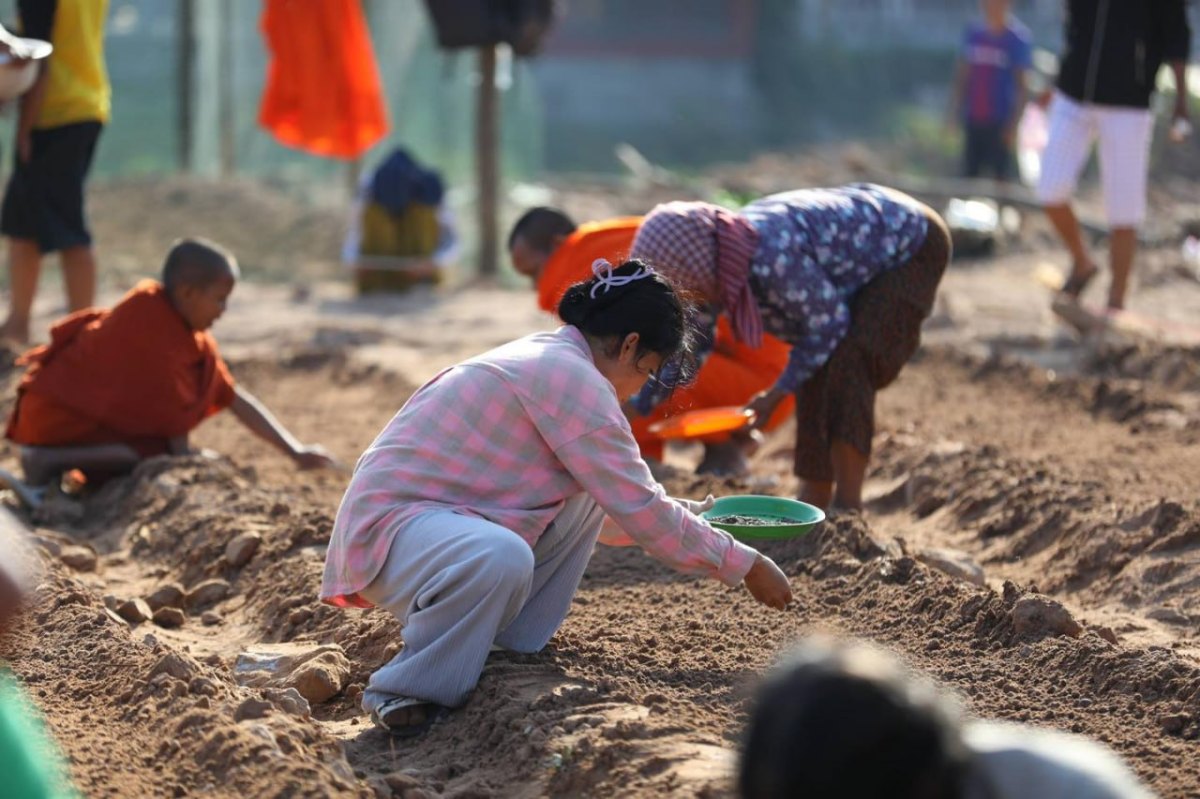 ព្រះសង្ឃ​ បងប្អូនភៀសសឹក​ និងក្រុមការងារ បានបន្តរៀបចំដី និងដាំបន្លែបន្ថែម នៅមណ្ឌលស្នាក់នៅវត្តប្រសាទគោកចក ខេត្តសៀមរាប
