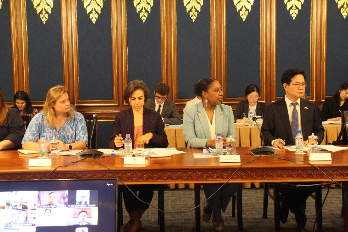 នៅរសៀលថ្ងៃទី៦ ខែមករា ឆ្នាំ២០២៦ ឯកឧត្តមឧបនាយករដ្ឋមន្ត្រី ប្រាក់ សុខុន រដ្ឋមន្ត្រីការបរទេស និងសហប្រតិបត្តិការអន្តរជាតិ បានធ្វើបទបង្ហាញស្តីពីការវិវត្តន៍ថ្មីៗនៃស្ថានភាពព្រំដែនកម្ពុជា-ថៃ ជូនប្រធានបេសកកម្មការទូត និងតំណាងអង្គការអន្តរជាតិនានាក្នុងរាជធានីភ្នំពេញចំនួន៣៣ ស្ថានតំណាង និងមានចំនួនសរុប៥៥ រូប។