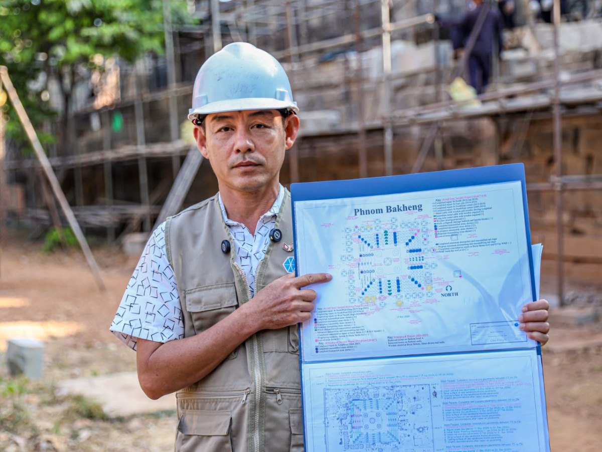 លោកបានពន្យល់ថា ក្រុមការងារបានជួសជុលផ្នែកកម្រាលនៅតាមជាន់ទាំងបួន ដែលតាងដោយអក្សរ F (ជាន់ក្រោម) និងរហូតដល់អក្សរ C ដែលជាជាន់ទីបួន។ នេះជាដំណាក់កាលទី៣ នៃគម្រោងជួសជុលប្រាសាទភ្នំបាខែង ខណៈដែលអង្គការ WMF បានចូលខ្លួនចូលរួមអភិរក្សប្រាសាទនេះតាំងពីឆ្នាំ២០០៤មក។ ចាប់ពីឆ្នាំ២០០៤ ដល់ឆ្នាំ ២០០៧ WMF បានចូលមកសិក្សាស្រាវជ្រាវ និងធ្វើគម្រោងជួសជុលសាកល្បង នៅជាន់F ជ្រុងខាងត្បូងឈៀងខាងលិច។