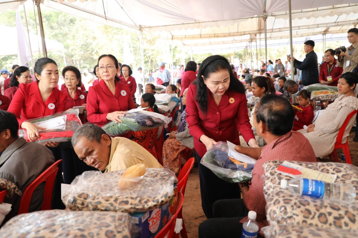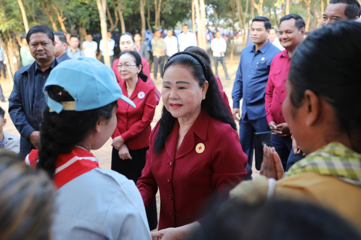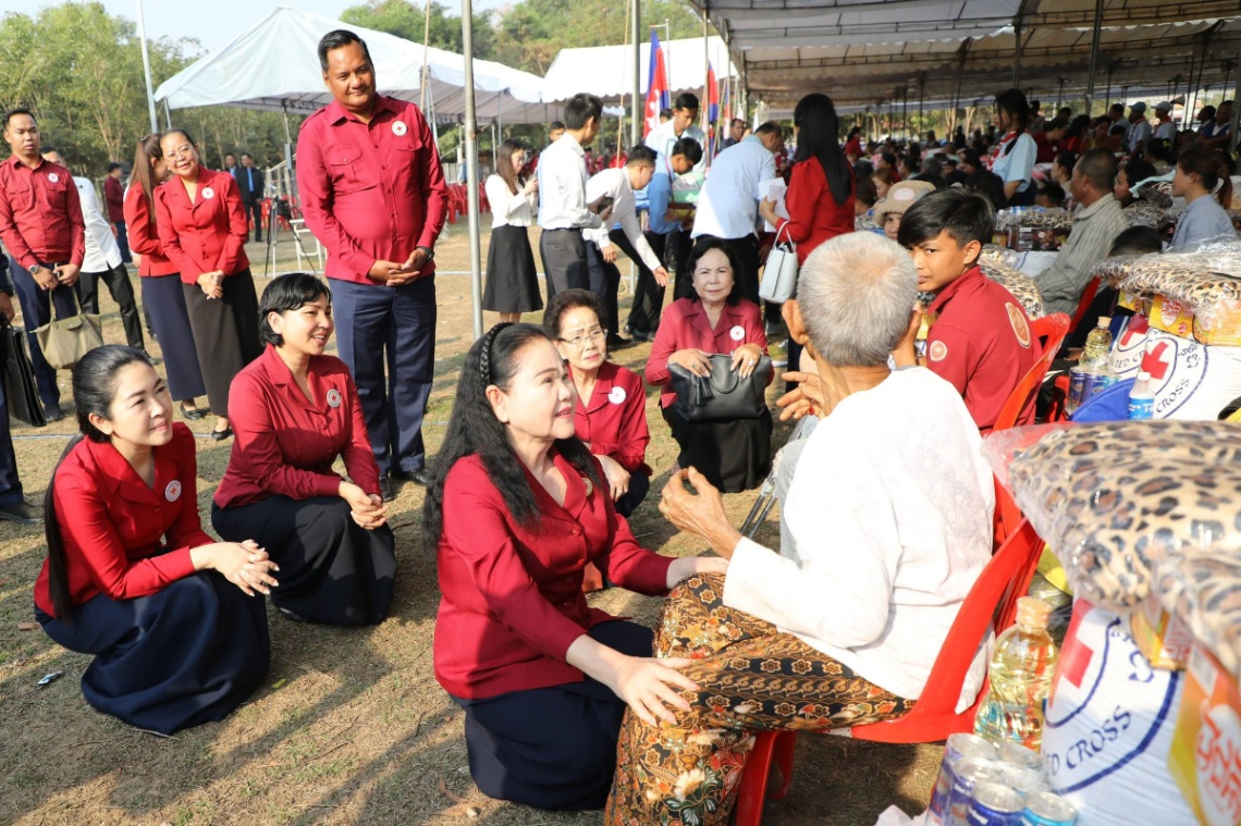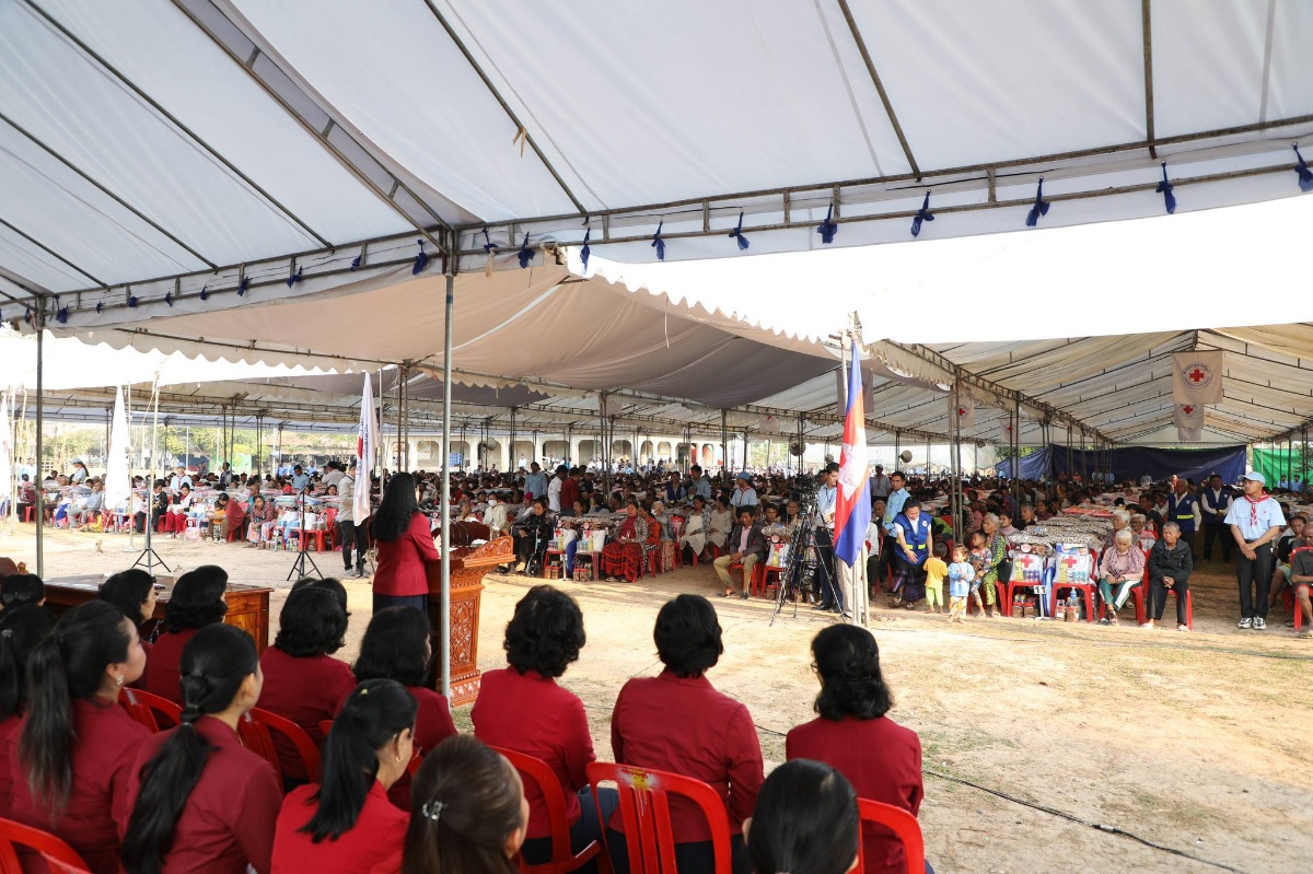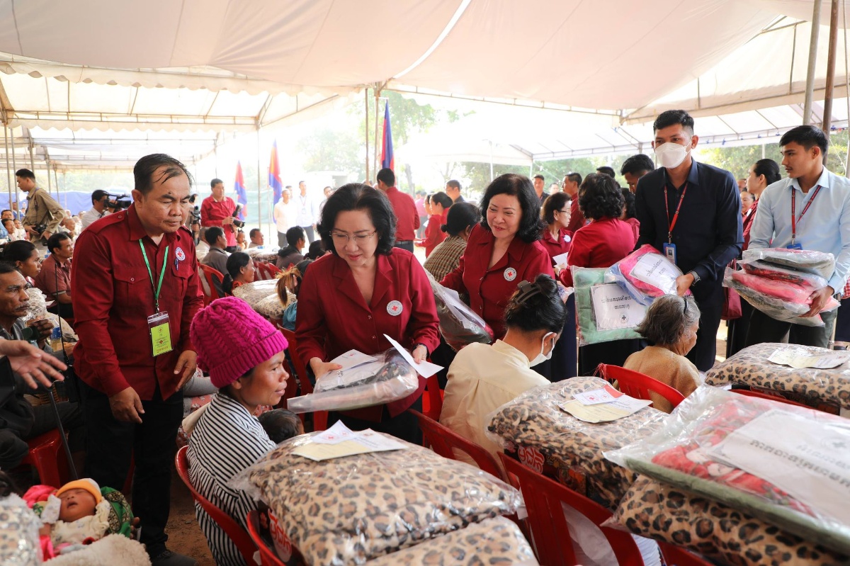 សម្តេចកិត្តិព្រឹទ្ធបណ្ឌិត ប៊ុន រ៉ានី ហ៊ុនសែន ប្រធានកាកបាទក្រហមកម្ពុជា អញ្ជើញជួបសំណេះសំណាលសួរសុខទុក្ខ និងចែកអំណោយមនុស្សធម៌ ជូនដល់ប្រជាជនភៀសសឹកចំនួន ២២០៥ គ្រួសារ មកពីតាមបណ្តាខេត្តចំនួន៥ ដែលមកស្នាក់នៅបណ្តោះអាសន្ន ក្នុងស្រុកក្រឡាញ់ ខេត្តសៀមរាប។