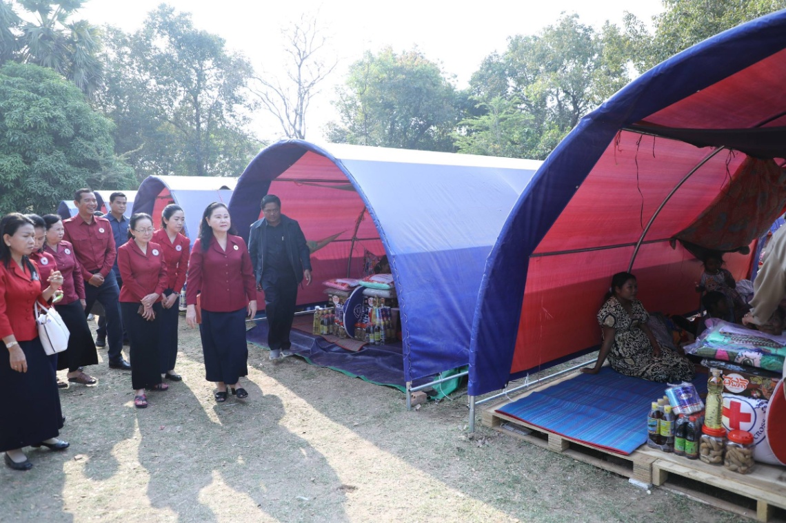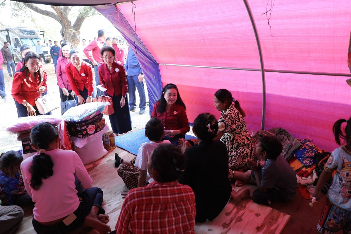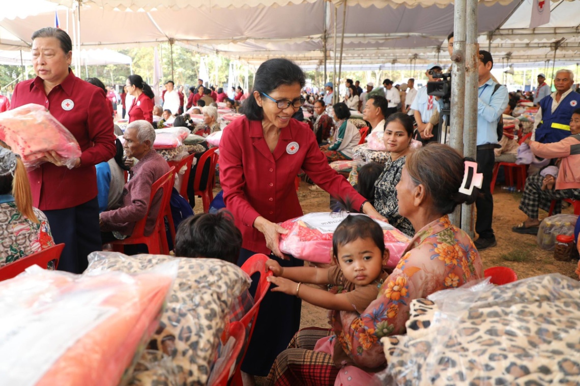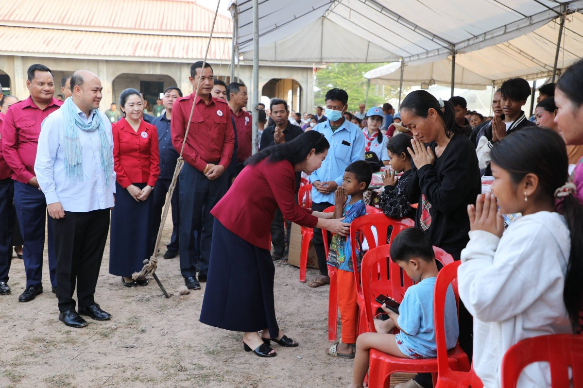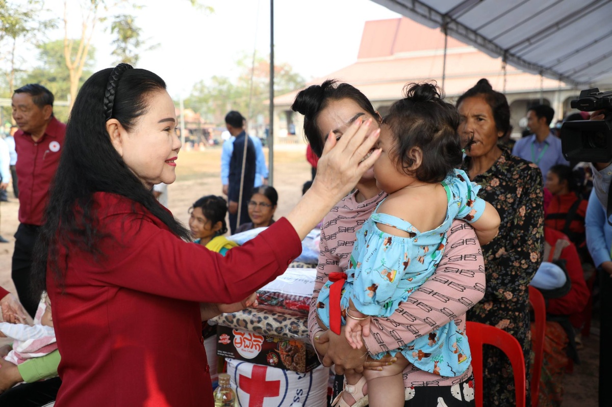 សម្តេចកិត្តិព្រឹទ្ធបណ្ឌិត ប៊ុន រ៉ានី ហ៊ុនសែន ប្រធានកាកបាទក្រហមកម្ពុជា អញ្ជើញជួបសំណេះសំណាលសួរសុខទុក្ខ និងចែកអំណោយមនុស្សធម៌ ជូនដល់ប្រជាជនភៀសសឹកចំនួន ២២០៥ គ្រួសារ មកពីតាមបណ្តាខេត្តចំនួន៥ ដែលមកស្នាក់នៅបណ្តោះអាសន្ន ក្នុងស្រុកក្រឡាញ់ ខេត្តសៀមរាប។