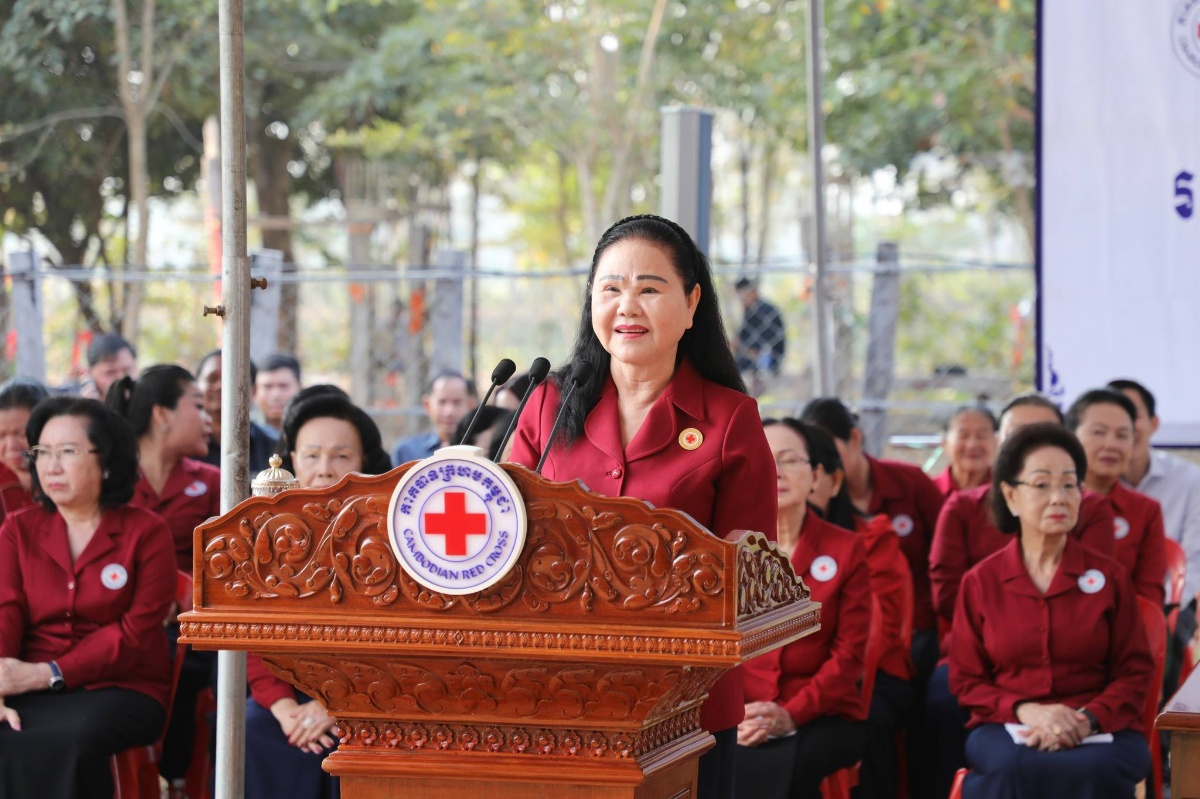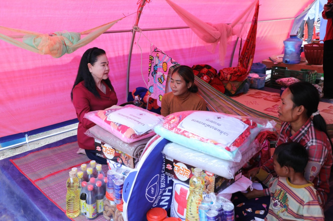 មានប្រសាសន៍សំណេះសំណាលសួរសុខទុក្ខ ជាមួយប្រជាជនភៀសសឹកទាំងអស់នាឱកាសនេះ សម្តេចកិត្តិព្រឹទ្ធបណ្ឌិត ប៊ុន រ៉ានី ហ៊ុនសែន មានក្តីក្តុកក្តួលរំជួលចិត្ត អាណិតអាសូរយ៉ាងក្រៃលែង ចំពោះលោកយាយ លោកតា បងប្អូនជនភៀសសឹកទាំងអស់ ដែលបង្ខំចិត្តចាកចោលផ្ទះសម្បែង ព្រាត់ប្រាសក្រុមគ្រួសារ។ ទន្ទឹមនឹងនេះ សម្តេចកិត្តិព្រឹទ្ធបណ្ឌិត ប្រធាន បាននាំនូវព្រះរាជបន្ទូល និង ព្រះសវណីយ៍ផ្តាំផ្ញើសុខទុក្ខ និងក្តីនឹករលឹក អាណិតអាសូរពី ព្រះករុណា ព្រះមហាក្សត្រ ជាអម្ចាស់ជីវិតលើត្បូង និងសម្តេចព្រះមហាក្សត្រី នរោត្តម មុនិនាថ សីហនុ ព្រះវររាជមាតាជាតិខ្មែរ ព្រះប្រធានកិត្តិយស កាកបាទក្រហមកម្ពុជា ជាទីគោរពសក្ការៈដ៏ខ្ពង់ខ្ពស់បំផុត ដែលជានិច្ចកាល ព្រះអង្គទាំងទ្វេ តែងតែគិតគូរពីសុខទុក្ខ របស់បង-ប្អូនប្រជានុរាស្ត្រ នៅគ្រប់ទីកន្លែង ថ្វីបើព្រះអង្គមិនបានយាងមកជួប លោកយាយ លោកតា មាមីង បងប្អូន កូនក្មួយដោយផ្ទាល់ក៏ដោយ។ សម្តេចប្រធានបានបញ្ជាក់ថា ទោះបីជាស្ថិតក្នុងកាល:ទេស:ណាក៏ដោយ រាជរដ្ឋាភិបាលក៏ដូចជា កាកបាទក្រហមកម្ពុជា នៅតែគិតគូរយកចិត្តទុកដាក់ ដល់ប្រជាពលរដ្ឋគ្រប់ពេលវេលា ជាពិសេសបងប្អូនប្រជាពលរដ្ឋភៀសសឹក រស់នៅតាមបន្ទាត់ព្រំដែន ដែលធ្វើឱ្យបាត់បង់សេចក្តីសុខ សុភមង្គល ក្នុងក្រុមគ្រួសារ និងការសិក្សារបស់កូនៗ ចៅៗ។ ដោយមើលឃើញពីទុក្ខលំបាកទាំងអស់នេះហើយ ទើបថ្ងៃនេះ កក្រក បាននាំយកគ្រឿងឧបភោគបរិភោគ និងសម្ភារ:ប្រើប្រាស់មួយចំនួនជូនបងប្អូន ដើម្បីជួយសម្រាលជីវភាពបានមួយគ្រាផងដែរ។