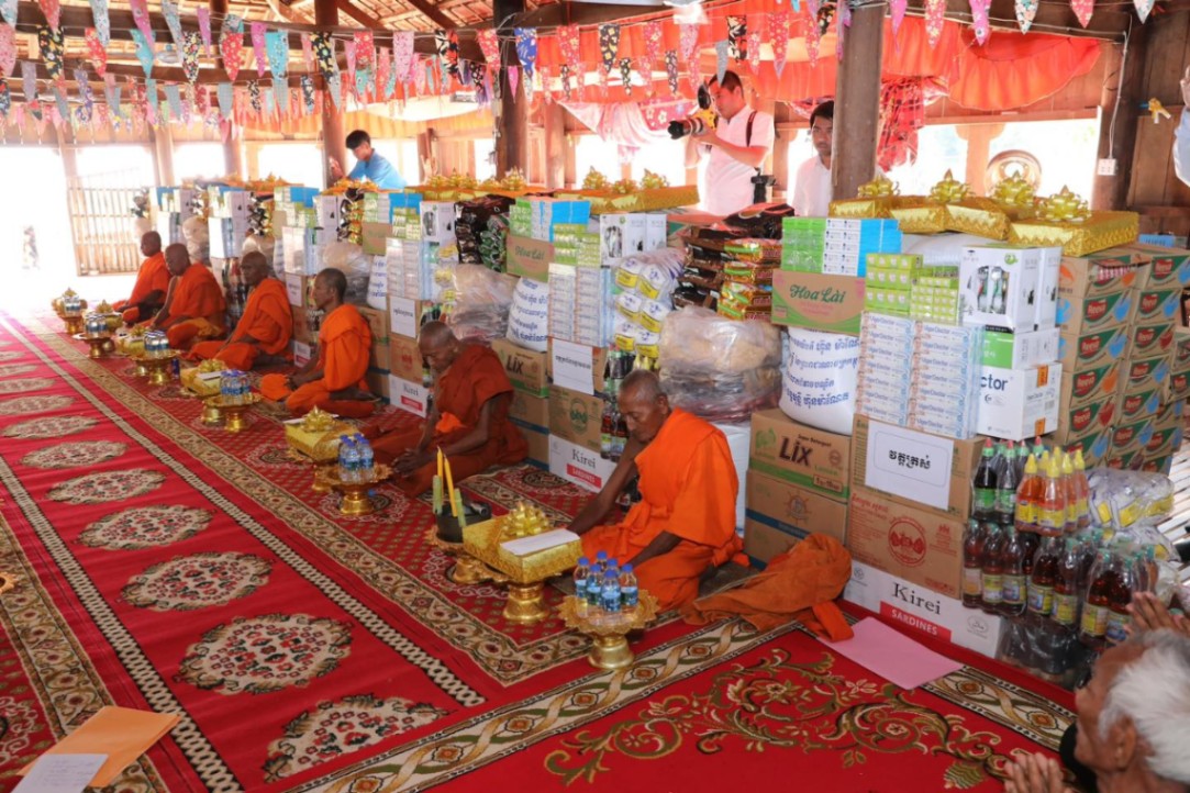 ទេយ្យវត្ថុសម្រាប់១វត្តៗទទួលបាន៖ ១-អង្ករ១តោន, ២-មី៣០កេសតូច, ៣-ត្រីងៀត១០គីឡូក្រាម, ៤-សាច់ក្រក១០គីឡូក្រាម, ៥-សាច់ផាត់១០គីឡូក្រាម, ៦-ទឹកដោះគោខាប់២កេស, ៧-កាហ្វេ៥កញ្ចប់ធំ, ៨-តែ២គីឡូក្រាម, ៩-ស្ករស១បេ,១០-អំបិល១បេ, ១១-ទឹកត្រី៥យួរ, ១២-ទឹកស៊ីអ៊ីវ៥យួរ, ១៣-ទឹកម្ទេស៥យួរ, ១៤-ទឹកសៀង៥យួរ, ១៥-សាប៊ូដុំ១០០ដុំតូច, ១៦-ច្រាស និងថ្នាំដុសធ្មេញ១០០ឈុត, ១៧-ប្រេងកូឡា១០០ដប, ១៨-ប្រេងខ្យល់១០០ដប, ១៩-ថ្នាំពេទ្យ២០ប្រអប់, ២០-ស្លាដក់៣២, ២១-សាប៊ូម្ស៉ៅ១០កញ្ចប់, ២២-ថវិកា២លានរៀល។