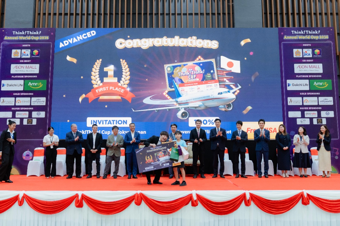 សម្រាប់សិស្សជ័យលាភីនៃកម្មពិធី Think!Think! World Cup 2025 ក្នុងនោះកម្រិតមត្តេយ្យ (Kinder Category) លេខ១៖ ខឹម បុទុម រមនា, លេខ២. កានបញ្ញា ដារិត, លេខ៣. ហុង សេង ងួន, លេខ៤. ខេន វាតាណាបិ និងលេខ៥. សុខ លីហុង ។ កម្រិតបឋមសិក្សា (Primary Category), លេខ១. សម្បត្តិ សុវណ្ណវឌ្ឍនៈ, លេខ២. នីណូ តាមូរ៉ា, លេខ៣. សារ៉ា ជូរី, លេខ៤. ជា ចន្ទវីរៈ និងលេខ៥. ខេង ផាន់រតន, កម្រិតខ្ពស់ (Advanced Category), លេខ១. អ៊ិអូរិ គីមូរ៉ា, លេខ២. សារ៉ា ម៉ូរីសា, លេខ៣. ផាន់ វ៉ីនឆាយ, លេខ៤. រ៉ុងមុនី ប្រសិដ្ឋ និងលេខ៥. អ៊ឹង លីមហ័រ ។ ដើម្បីធ្វើឱ្យព្រឹត្តិការណ៍នេះកាន់តែរំភើប សិស្សចំនួន ២នាក់ ដែលមានពិន្ទុខ្ពស់បំផុតក្នុងប្រភេទថ្នាក់នីមួយៗ គឺទទួលបានរង្វាន់សំបុត្រយន្តហោះ និងឱកាសចូលរួមព្រឹត្តិការណ៍ Think!Think! Cup នៅទីក្រុងតូក្យូក្នុងឆ្នាំ២០២៦ ។