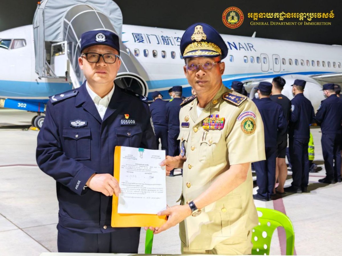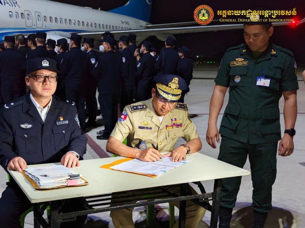 នៅយប់ថ្ងៃទី៧ ខែកុម្ភៈ ឆ្នាំ២០២៦ អនុវត្តតាមអនុសាសន៍ដ៏ខ្ពង់ខ្ពស់ របស់ឯកឧត្តមអភិសន្តិបណ្ឌិត ឧបនាយករដ្ឋមន្ត្រី រដ្ឋមន្ត្រីក្រសួងមហាផ្ទ, ឯកឧត្តម ឧត្តមសេនីយ៍ឯក សុខ វាសនា អគ្គនាយកអន្តោប្រវេសន៍ បានណែនាំឱ្យនាយកដ្ឋានស៊ើបអង្កេត និងអនុវត្តនីតិវិធី សហាការជាមួយស្ថានទូតចិន បន្តធ្វើការបណ្តេញជនជាតិចិនសរុបចំនួន១១០នាក់ (ស្រី០នាក់) ពាក់ព័ន្ធករណី Online Scams ត្រូវបានបណ្ដេញចេញតាមរយៈយន្តហោះពិសេស នៅប៉ុស្តិ៍នគរបាលច្រកទ្វារអាកាសអន្តរជាតិតេជោ។