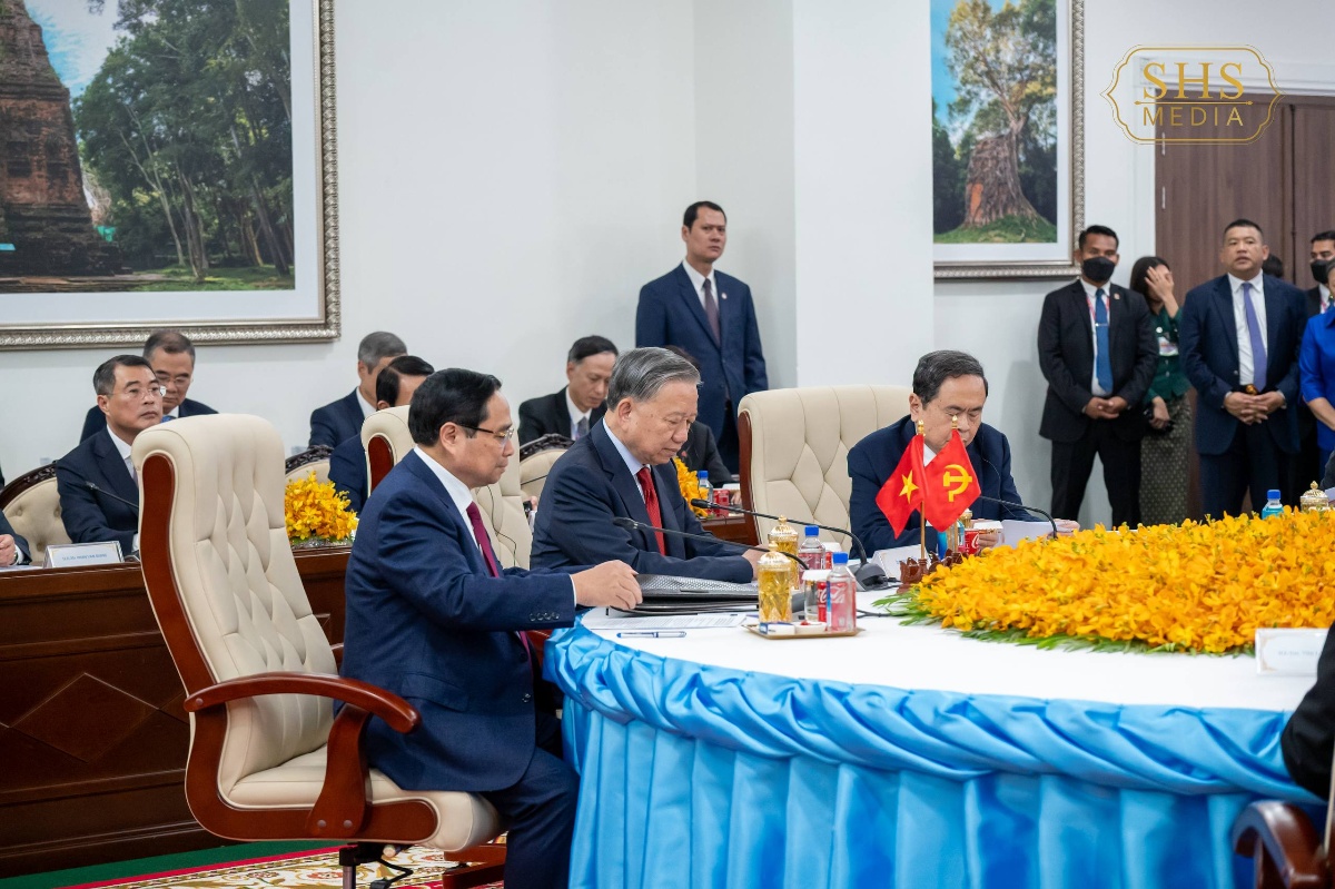 ក្នុងជំនួបនេះ អ្នកដឹកនាំកំពូលនៃគណបក្សទាំងបីបានជូនព័ត៌មានគ្នាទៅវិញទៅមកអំពីសភាពការណ៍ ជាតិ តំបន់ និងអន្តរជាតិ ព្រមទាំងចែករំលែកអំពីបទពិសោធន៍ និងសភាពការណ៍លេចធ្លោនៃគណបក្ស និង ប្រទេសនីមួយៗ ទំនាក់ទំនងទ្វេភាគី និងទំនាក់ទំនងត្រីភាគី និងកិច្ចសហប្រតិបត្តិការ ក្នុងក្របខណ្ឌតំបន់ និង អន្តរជាតិ ព្រមទាំងដាក់ចេញគោលការណ៍ និងទិសដៅសម្រាប់កិច្ចសហប្រតិបត្តិការជាយុទ្ធសាស្ត្រ ក្នុង ពេលខាងមុខ។ ភាគីទាំងបីបានកោតសរសើរនិងវាយតម្លៃខ្ពស់អំពីសមិទ្ធផលនៃកិច្ចសហប្រតិបត្តិការកន្លងមក ហើយបានសម្តែងនូវការជឿទុកចិត្តគ្នាខ្ពស់ក្នុងការប្តេជ្ញាបន្តពង្រឹង និងពង្រីកកិច្ចសហប្រតិបត្តិការគ្នាទៅវិញទៅមក ដើម្បីឱ្យប្រទេសទាំងបីសម្រេចគោលដៅក្លាយជាប្រទេសចំណូលខ្ពស់នៅឆ្នាំ២០៤៥ សម្រាប់វៀតណាម ឆ្នាំ២០៥០ សម្រាប់កម្ពុជា និងឆ្នាំ២០៥៥ សម្រាប់ប្រទេសឡាវ។