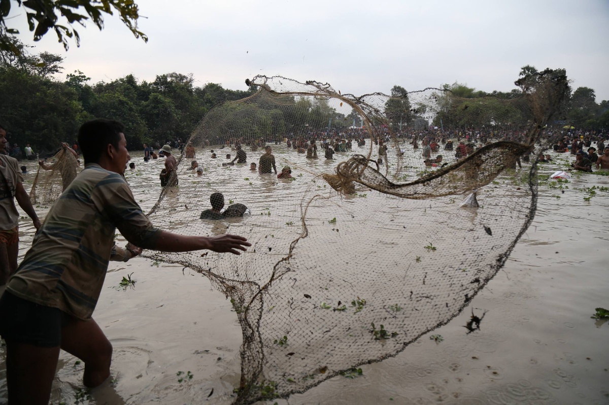ពិធីចាប់ត្រីរួមគ្នាសម្រាប់ពិធីបុណ្យឡើងមាឃ គឺជាប្រពៃណី ទំនៀមមួយ របស់ប្រជាពលរដ្ឋនៅក្នុងតំបន់អង្គរ បានប្រកាន់យ៉ាងខ្ជាប់ខ្ជួន ដែលពួកគាត់តែងតែរួមគ្នាប្រារព្វជារៀងរាល់ឆ្នាំតពីបុរាណកាល។ ក្នុងពិធីចាប់ត្រីនោះ នៅពេលព្រឹកព្រលឹមស្រាងៗ ប្រជាពលរដ្ឋមានចាស់ ក្មេង ប្រុស ស្រីជាច្រើនរយនាក់ ក្នុងដៃមានកាន់ សំណាញ់ អង្រុត ឈ្នាង និងទ្រុង បានមកជួបជុំគ្នា ដោយគណៈកម្មការបានកំណត់ការជួបជុំគ្នា និងចុះចាប់ត្រី នៅម៉ោង៧ព្រឹកជាកំហិត។ជាមួយគ្នានេះ ការចាប់ត្រីមានពីរផ្នែក ទី១ គឺអនុញ្ញាតិឱ្យចាប់រួមគ្នា ប៉ុន្ដែផ្នែកទី២ នៅក្នុងបឹងសហគមន៍ បានហ៊ុសម្រាស់ សម្រាប់តែអ្នកភូមិចាប់ត្រីរួមគ្នាដើម្បីយកធ្វើម្ហូបបុណ្យភូមិ ឬឡើងបុណ្យមាឃតែប៉ុណ្ណោះ៕