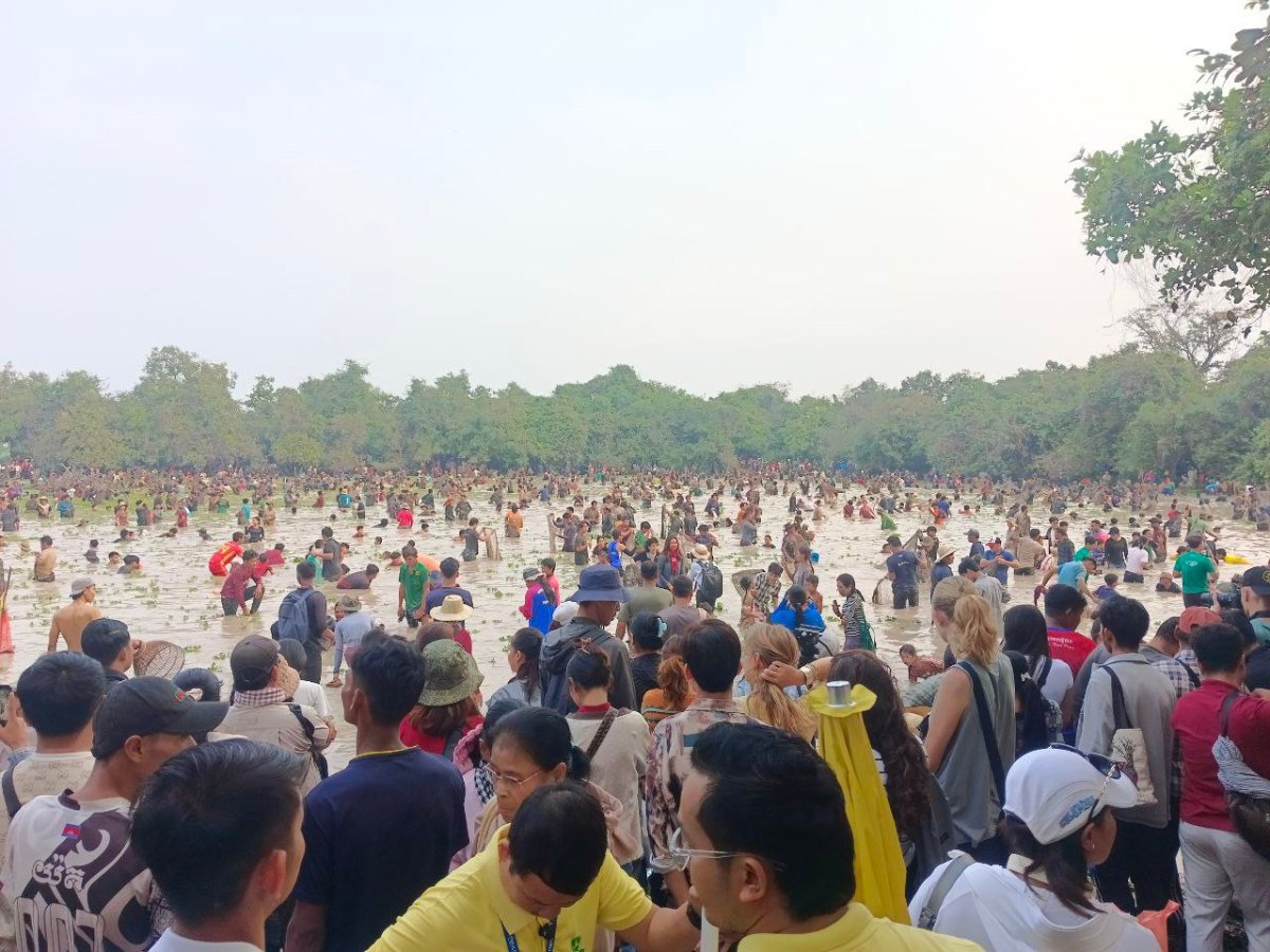 ពិធីចាប់ត្រីឡើងមាឃរបស់អ្នកស្រុកអង្គរ នៅបឹងសហគមន៍ ក្នុងភូមិបង្កោង ឃុំអំពិល ស្រុកប្រាសាទបាគង ខេត្ដសៀមរាប បានចាប់ផ្ដើមហើយនៅព្រឹកថ្ងៃទី៨ខែកុម្ភៈឆ្នាំ២០២៦នេះ ដោយមានមនុស្សរាប់ពាន់នាក់ ទៅកម្សាន្ដ និងចូលរួមចាប់សាមគ្គីភាព ប្រកបដោយក្ដីរីករាយ ខណៈដែលទិន្នផលត្រីឆ្នាំនេះមានការកើនឡើងច្រើន។