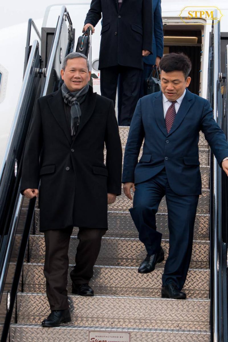 ភ្នំពេញ៖ សម្តេចមហាបវរធិបតី ហ៊ុន ម៉ាណែត នាយករដ្ឋមន្ត្រីនៃព្រះរាជាណាចក្រកម្ពុជា បានដឹកនាំគណៈប្រតិភូជាន់ខ្ពស់ អញ្ជើញដល់សហរដ្ឋអាមេរិកហើយកាលពីយប់ថ្ងៃទី១៦ ខែកុម្ភៈ ឆ្នាំ២០២៦នេះ ម៉ោងនៅកម្ពុជា ត្រូវនឹងវេលាព្រឹកម៉ោងនៅអាមេរិក ដើម្បីចូលរួមកិច្ចប្រជុំដំបូងនៃក្រុមប្រឹក្សាសន្តិភាព។