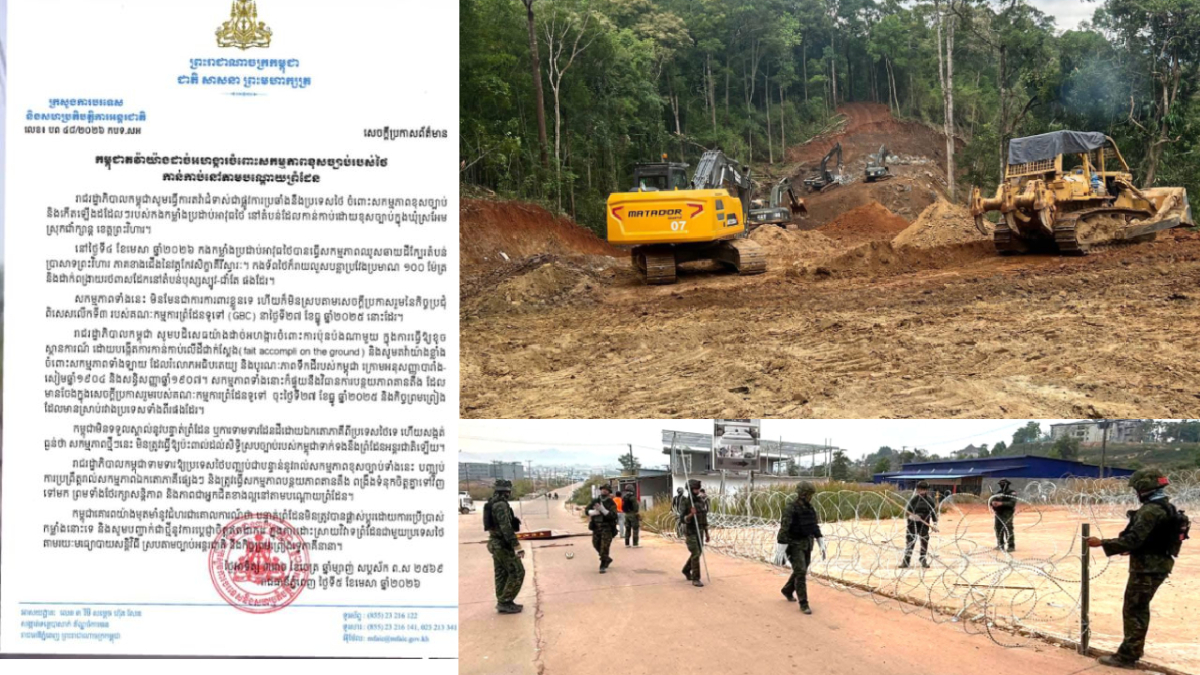 កម្ពុជាតវ៉ាយ៉ាងដាច់អហង្ការចំពោះសកម្មភាពខុសច្បាប់របស់ថៃកាន់កាប់នៅតាមបណ្តោយព្រំដែនលើទឹកដីកម្ពុជា