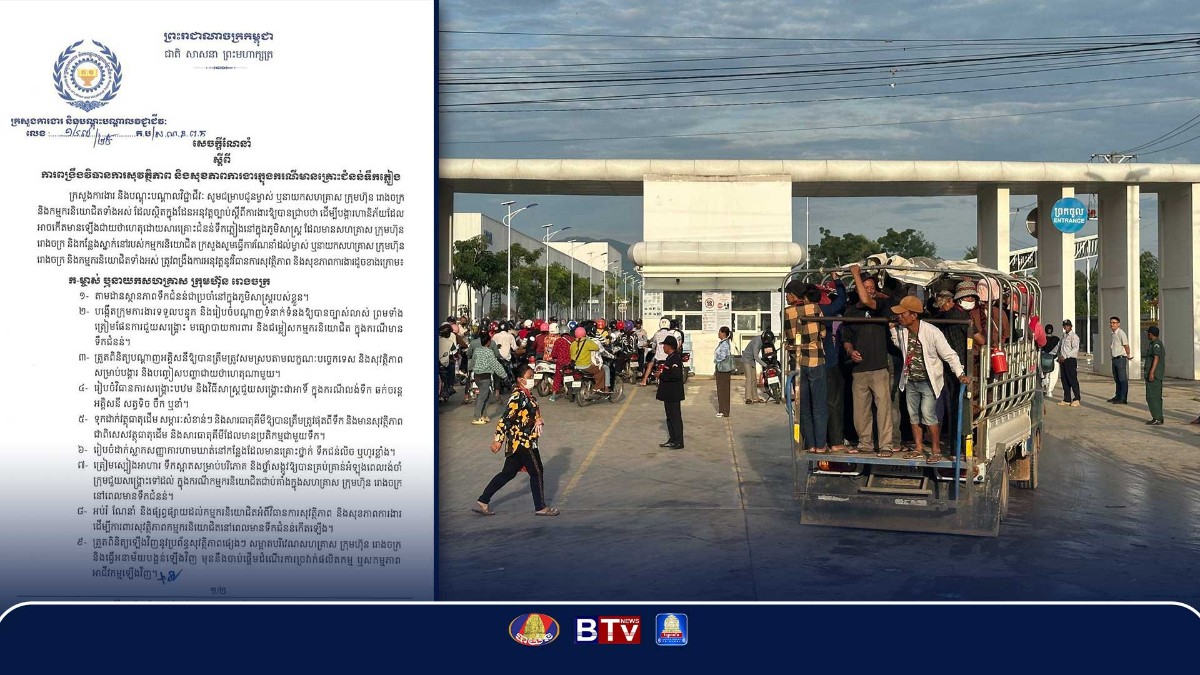 ក្រសួងការងារ និងបណ្តុះបណ្តាលវិជ្ជាជីវៈ នៅថ្ងៃទី១៣ ខែតុលា ឆ្នាំ២០២៥នេះ បានចេញសេចក្តីណែនាំស្តីពីការពង្រឹងវិធានការសុវត្ថិភាព និងសុខភាពការងារក្នុងករណីមានគ្រោះជំនន់ទឹកភ្លៀង។ តាមរយៈសេចក្តីណែនាំ ក្រសួងការងារ បានធ្វើការណែនាំដល់ម្ចាស់ ឬនាយកសហគ្រាស ក្រុមហ៊ុន រោងចក្រ និងកម្មករនិយោជិតទាំងអស់ ត្រូវពង្រឹងការអនុវត្តនូវវិធានការសុវត្ថិភាព និងសុខភាពការងារដូចខាងក្រោម៖ក- ម្ចាស់ ឬនាយកសហគ្រាស ក្រុមហ៊ុន រោងចក្រ*ទី១៖ តាមដានស្ថានភាពទឹកជំនន់ជាប្រចាំនៅក្នុងភូមិសាស្ត្ររបស់ខ្លួន។*ទី២៖ បង្កើតក្រុមការងារទទួលបន្ទុក និងរៀបចំបណ្តាញទំនាក់ទំនងឱ្យបានច្បាស់លាស់ ព្រមទាំង ត្រៀមផែនការជួយសង្គ្រោះ មធ្យោបាយការពារ និងជម្លៀសកម្មករនិយោជិត ក្នុងករណីមាន ទឹកជំនន់។*ទី៣៖ ត្រួតពិនិត្យបណ្តាញអគ្គិសនីឱ្យបានត្រឹមត្រូវសមស្របតាមលក្ខណៈបច្ចេកទេស និងសុវត្ថិភាព សម្រាប់បង្ការ និងបញ្ចៀសបញ្ហាជាយថាហេតុណាមួយ។*ទី៤៖ រៀបចំវិធានការសង្គ្រោះបឋម និងវិធីសាស្ត្រជួយសង្គ្រោះជាអាទិ៍ ក្នុងករណីលង់ទឹក ឆក់ចរន្ត អគ្គិសនី សត្វទិច ចឹក ឬខាំ។*ទី៥៖ ទុកដាក់វត្ថុធាតុដើម សម្ភារៈសំខាន់ៗ និងសារធាតុគីមីឱ្យបានត្រឹមត្រូវផុតពីទឹក និងមានសុវត្ថិភាព ជាពិសេស់វត្ថុធាតុដើម និងសារធាតុគីមីដែលមានប្រតិកម្មជាមួយទឹក។*ទី៦៖ រៀបចំដាក់ស្លាកសញ្ញាការហាមឃាត់នៅកន្លែងដែលមានគ្រោះថ្នាក់ ទឹកជន់លិច ឬហូរខ្លាំង។*ទី៧៖ ត្រៀមស្បៀងអាហារ ទឹកស្អាតសម្រាប់បរិភោគ និងថ្នាំសង្កូវឱ្យបានគ្រប់គ្រាន់អំឡុងពេលរង់ចាំ ក្រុមជួយសង្គ្រោះទៅដល់ ក្នុងករណីកម្មករនិយោជិតជាប់គាំងក្នុងសហគ្រាស ក្រុមហ៊ុន រោងចក្រ នៅពេលមានទឹកជំនន់។*ទី៨៖ អប់រំ ណែនាំ និងផ្សព្វផ្សាយដល់កម្មករនិយោជិតអំពីវិធានការសុវត្ថិភាព និងសុខភាពការងារ ដើម្បីការពារសុវត្ថិភាពកម្មករនិយោជិតនៅពេលមានទឹកជំនន់កើតឡើង។*ទី៩៖ ត្រួតពិនិត្យឡើងវិញនូវប្រព័ន្ធសុវត្ថិភាពផ្សេងៗ សម្អាតបរិវេណសហគ្រាស ក្រុមហ៊ុន រោងចក្រ និងធ្វើអនាម័យបង្គន់ឡើងវិញ មុននឹងចាប់ផ្តើមដំណើរការច្រវាក់ផលិតកម្ម ឬសកម្មភាព អាជីវកម្មឡើងវិញ។*និងទី១០៖អនុវត្តឱ្យបានហ្មត់ចត់តាមវិធានការរបស់អាជ្ញាធរមូលដ្ឋាន និងវិធានការនានារបស់ស្ថាប័នពាក់ព័ន្ធ ព្រមទាំងសហការឱ្យបានពេញលេញជាមួយអាជ្ញាធរមានសមត្ថកិច្ច ក្នុងករណីមានការណែនាំ ជាក់ស្តែង។ខ-កម្មករនិយោជិត*ទី១៖ បង្កើនការប្រុងប្រយ័ត្នគ្រោះថ្នាក់ផ្ទាល់ខ្លួនជាអាទិ៍ លង់ទឹក ឆក់ចរន្តអគ្គិសនី សត្វទិច ចឹក ឬខាំ។*ទី២៖ ផ្តល់ព័ត៌មានអំពីស្ថានភាពសុវត្ថិភាព និងសុខភាពការងាររបស់ខ្លួនទៅកាន់និយោជកជាប្រចាំ ក្នុងអំឡុងពេលឈប់សម្រាកដោយសារគ្រោះទឹកជំនន់។*ទី៣៖ អនុវត្តឱ្យបានខ្ជ