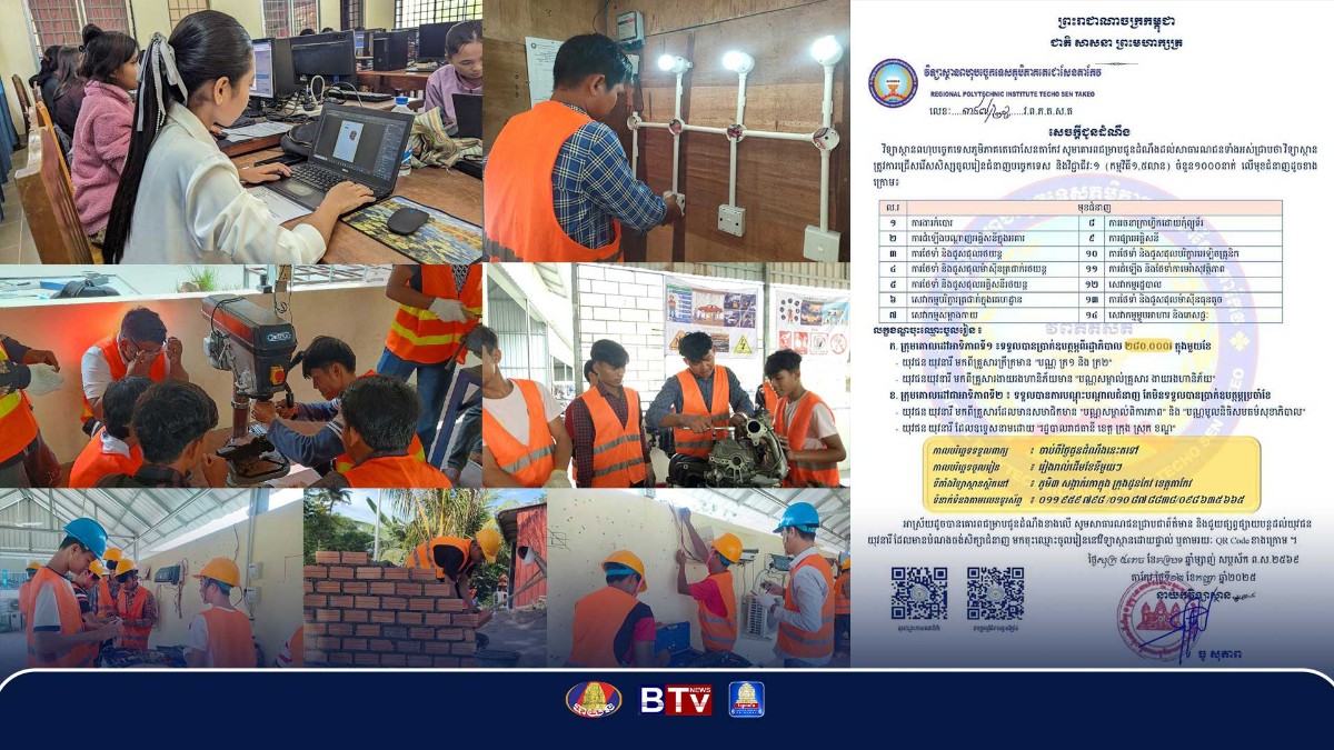 ស្ថានីយទូរទស្សន៍ បី ធី វី (BTV News) ទីតាំងភូមិឬស្សីស្រស់ សង្កាត់និរោធ ខណ្ឌច្បារអំពៅ រាជធានីភ្នំពេញ ព្រះរាជាណាចក្រកម្ពុជា ។