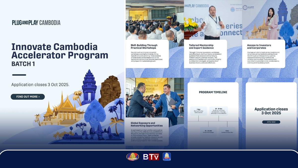 ដើម្បីរួមចំណែកលើកកម្ពស់ប្រព័ន្ធអេកូឡូស៊ីធុរកិច្ចថ្មីឌីជីថល និងប្រែក្លាយកម្ពុជា​ជាមជ្ឈមណ្ឌល​នវានុវត្តន៍​ឌីជីថល​មួយនៅក្នុងតំបន់ ក្រសួងប្រៃសណីយ៍និងទូរគមនាគមន៍ (ក.ប.ទ.) បាន​សហការ​ជាមួយ​មជ្ឈមណ្ឌលបច្ចេកវិទ្យា Plug and Play កម្ពុជា និងមជ្ឈមណ្ឌលបច្ចេកវិទ្យា AUPP (ATC) គ្រោងនឹងរៀបចំកម្មវិធីពន្លឿន និងអភិវឌ្ឍធុរកិច្ចថ្មីឌីជីថល “Innovate Cambodia Accelerator Program Batch 1” ដែលនឹងចាប់ផ្ដើមក្នុងខែតុលា ឆ្នាំ២០២៥ ខាងមុខនេះ។កម្មវិធីនេះរៀបចំឡើងក្នុងគោលបំណងជំរុញ និងផ្តល់ឱកាសដល់ធុរកិច្ចថ្មីឌីជីថល​ទទួលបាន​ការ​បណ្តុះ​បណ្តាលពន្លឿនអាជីវកម្ម អភិវឌ្ឍផលិតផលឌីជីថល និងពង្រីកខ្លួនទៅកាន់​ទីផ្សារ​ក្នុងតំបន់ ក៏ដូចជាឱកាសចាប់យកវិនិយោគទុនពីក្នុងនិងក្រៅប្រទេស។ អាស្រ័យហេតុនេះ ធុរកិច្ចថ្មីឌីជីថល ដែលមានចំណាប់អារម្មណ៍ចូលរួមកម្មវិធីនេះ អាចចុះ​ឈ្មោះ​ស្នើសុំ​ចូលរួមតាមរយៈតំណភ្ជាប់ https://go.gov.kh/mptc/pnpaccelerator ចាប់ពីថ្ងៃ​ជូន​ដំណឹង​នេះរហូតដល់ថ្ងៃទី៣ ខែតុលា ឆ្នាំ២០២៥។ សម្រាប់ព័ត៌មានបន្ថែម សូមទាក់ទង​តាម​ទូរសព្ទ​លេខ ០៩៦ ២៥៧ ០៥១៥ / ០៨៧ ៩៣០ ៥០១ ឬតាមរយៈអ៊ីមែល [email protected]