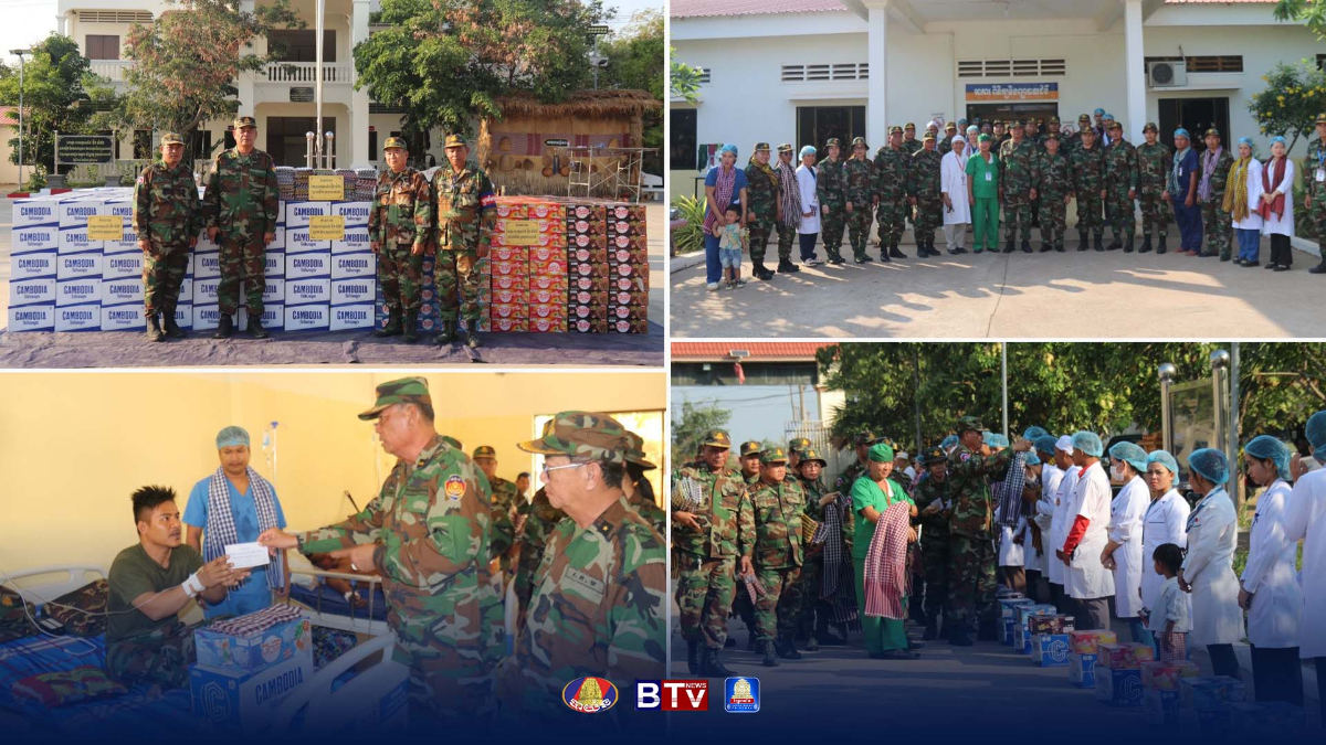 មេបញ្ជាការកងពលតូចដឹកជញ្ជូនលេខ៩៩ នាំយកអំណោយចែកជូនកងទ័ព និងក្រុមគ្រូពេទ្យនៃមន្ទីរពេទ្យសម្តេចតេជោ ហ៊ុន សែន ស្រអែម ខេត្តព្រះវិហារ