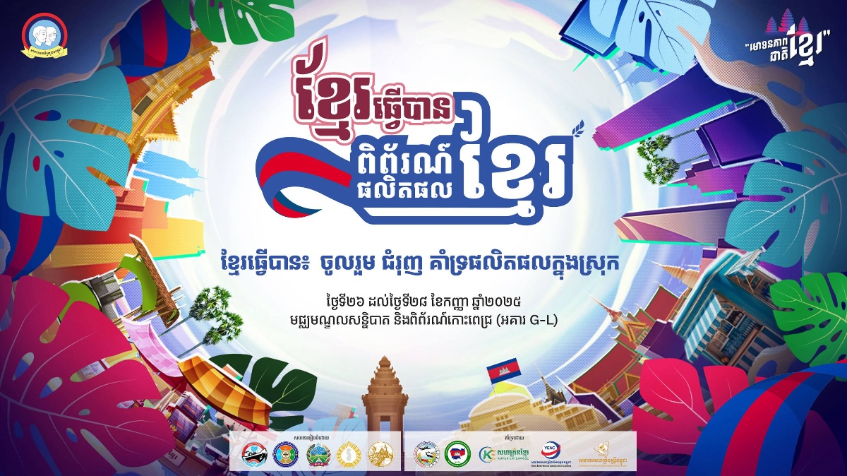 នៅថ្ងៃទី២៦ ដល់ថ្ងៃទី២៨ ខែកញ្ញា ឆ្នាំ២០២៥ ខាងមុខនេះសហភាពសហព័ន្ធយុវជនកម្ពុជា នឹងរៀបចំកម្មវិធីពិព័រណ៍ផលិតផលខ្មែរ ដែលជាកម្មវិធីមួយបន្ថែមទៀត ដើម្បីផ្តល់វេទិកាសម្រាប់បងប្អូនចូលរួមបង្ហាញមោទនភាពជាតិរបស់ខ្លួន នៅមជ្ឈមណ្ឌលសន្និបាត និងពិពរណ៌កោះពេជ្រ អាគារ(G-L)។កន្លងទៅ កាលពីខែមិថុនា និងកក្កដា កន្លងទៅ ប្រជាពលរដ្ឋទាំងអស់គ្នាបានមកជួបជុំគ្នា ក្នុងស្មារតីរួបរួមសាមគ្គីគ្នា ដើម្បីបង្ហាញមោទនភាពជាតិខ្មែរយ៉ាងច្រើនកុះករ។ ក្តីស្រលាញ់ ទឹកចិត្ត និងឆន្ទៈរបស់ជនរួមជាតិខ្មែរពីគ្រប់ទិសទី សរបញ្ជាក់នូវកម្លាំងរួបរួមនៃមហាគ្រួសារខ្មែរ នៅកាលៈទេសៈដែលប្រទេសជាតិត្រូវការ។ ក្នុងនាមជាអ្នកផ្តួចផ្តើមគំនិតរៀបចំព្រឹត្តិការណ៍ទាំង២ ស.ស.យ.ក. មានមោទនភាពដោយបានចូលរួមចំណែកផ្តល់ជាវេទិកាបង្ហាញទឹកចិត្តស្នេហាជាតិ ក្រោមរូបភាពខឿនការពារជាតិប្រជាជន។