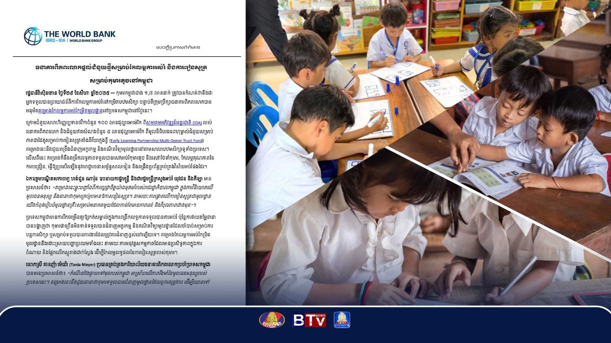 ធនាគារពិភពលោកផ្តល់ជំនួយ ១០០លានដុល្លារ សម្រាប់កែលម្អការអប់រំ​សម្រាប់កុមារតូច​នៅ​កម្ពុជា