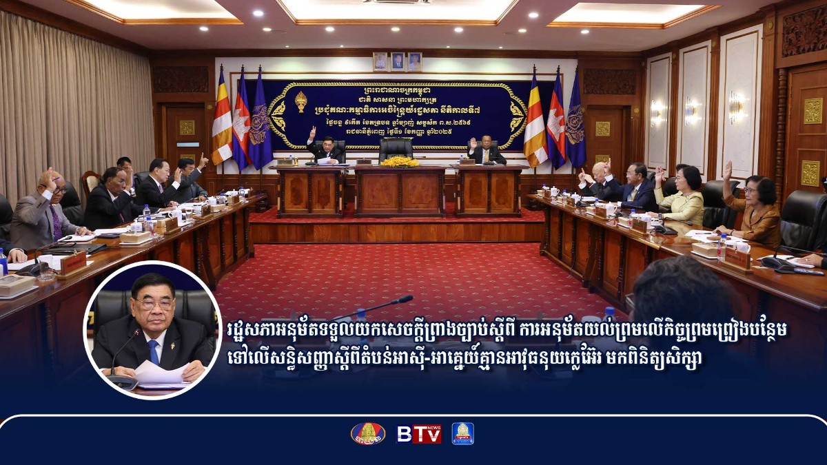 រដ្ឋសភានៃព្រះរាជាណាចក្រកម្ពុជា នៅព្រឹកថ្ងៃចន្ទ ទី១ ខែកញ្ញា ឆ្នាំ២០២៥នេះ បាន​បើក​កិច្ច​ប្រជុំ​គណៈកម្មាធិការអចិន្រ្តៃយ៍រដ្ឋសភា ក្រោមអធិបតីភាព ឯកឧត្ដមកិត្តិសេដ្ឋាបណ្ឌិត ជាម យៀប ប្រធានរដ្ឋសភាស្ដីទីនៃរដ្ឋសភា ដើម្បីពិនិត្យសំណើរបស់រាជរដ្ឋាភិបាល ដែល​បាន​ស្នើ​ជូន​រដ្ឋសភា ពិនិត្យ អនុម័តសេចក្តីព្រាងច្បាប់ស្តីពី ការអនុម័តយល់​ព្រម​លើ​កិច្ច​ព្រម​ព្រៀង​បន្ថែម​ទៅលើ​​សន្ធិសញ្ញាស្តីពីតំបន់អាស៊ី-អាគ្នេយ៍គ្មានអាវុធនុយក្លេអ៊ែរ។ជាលទ្ធផល គណៈកម្មាធិការអចិន្រ្តៃយ៍រដ្ឋសភាបានអនុម័តទទួលយកសេចក្តីព្រាងច្បាប់ស្តីពី ការ​អនុម័តយល់ព្រមលើកិច្ចព្រមព្រៀងបន្ថែមទៅលើសន្ធិសញ្ញាស្តីពីតំបន់អាស៊ី-អាគ្នេយ៍​គ្មាន​អាវុធ​នុយ​ក្លេអ៊ែរ ជូនគណៈកម្មការកិច្ចការបរទេស សហប្រតិបត្តិការអន្តរជាតិ និងព័ត៌មាននៃរដ្ឋសភា សហការ​ជាមួយគណៈកម្មការមហាផ្ទៃ ការពារជាតិ មុខងារសាធារណៈ និង​កិច្ចការ​ព្រំដែន​នៃ​រដ្ឋសភា​ ដើម្បីពិនិត្យសិក្សា ហើយធ្វើរបាយការណ៍ជូនគណៈកម្មាធិការអចិន្រ្តៃយ៍រដ្ឋសភាវិញ៕