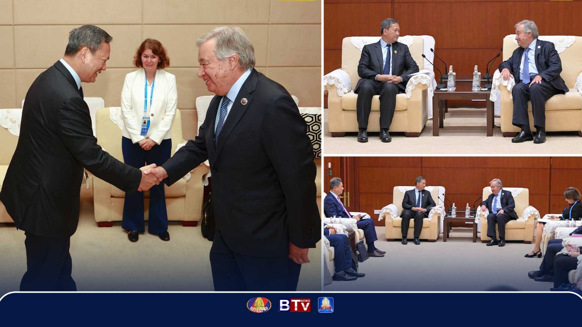 សម្តេចធិបតី ហ៊ុន ម៉ាណែត ជួបពិភាក្សាការងារជាមួយឯកឧត្តម António Guterres អគ្គលេខាធិការ UN នៅប្រទេសចិន