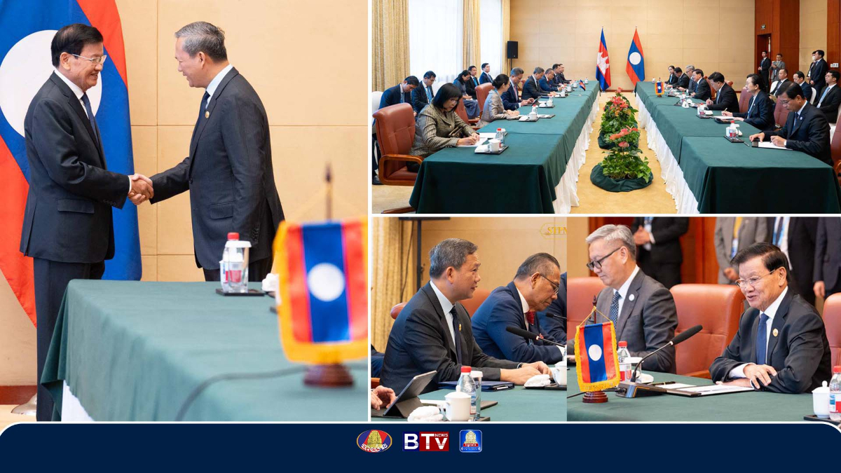 សម្តេចធិបតីនាយករដ្ឋមន្រ្តី ជួបពិភាក្សាការងារទ្វេភាគីជាមួយប្រធានាធិបតីឡាវ នៅប្រទេសចិន