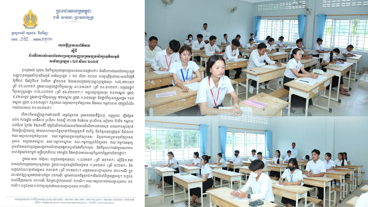 ក្រសួងអប់រំ៖ដំណើរការប្រឡងបាក់ឌុបពីរថ្ងៃនេះប្រព្រឹត្តទៅដោយគោរពតាមគោលការណ៍ច្បាប់ យុត្តិធម៌ តម្លាភាព ខណៈលទ្ធផលប្រឡងនឹងត្រូវប្រកាសនៅថ្ងៃទី២០ ខែកញ្ញាខាងមុខ