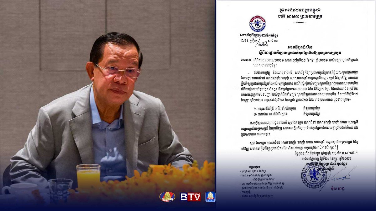 សម្ដេចតេជោ ឱ្យសហព័ន្ធ​កីឡាប្រដាល់​គុនខ្មែរ​លុប​ចោល​សេចក្តី​ជូន​ដំណឹង​ទាក់​ទងការ​​ហាម​ឃាត់​​កីឡាករ​ពីររូបមិនឲ្យប្រកួតរយៈពេល៦ខែ និងបែរមកដោះស្រាយដោយស្មារតីសាមគ្គីភាព