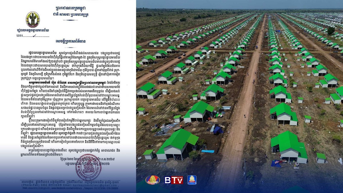 រដ្ឋបាលខេត្តបន្ទាយមានជ័យ៖ ក្រុមការងារកំពុង​ដំណើរ​ការសាង​សង់​ផ្ទះ​បណ្តោះ​អាសន្ន​លើ​ផ្ទៃ​ដី​ទំហំ ៤០០​ហិកតា​ជូន​ពលរដ្ឋ​ភៀស​សឹក​ដែល​ត្រូវ​ទាហាន​ចូល​ឈ្លាន​ពាន​មិន​ទាន់​អាច​ទៅ​ផ្ទះ​វិ​ញ​បាន