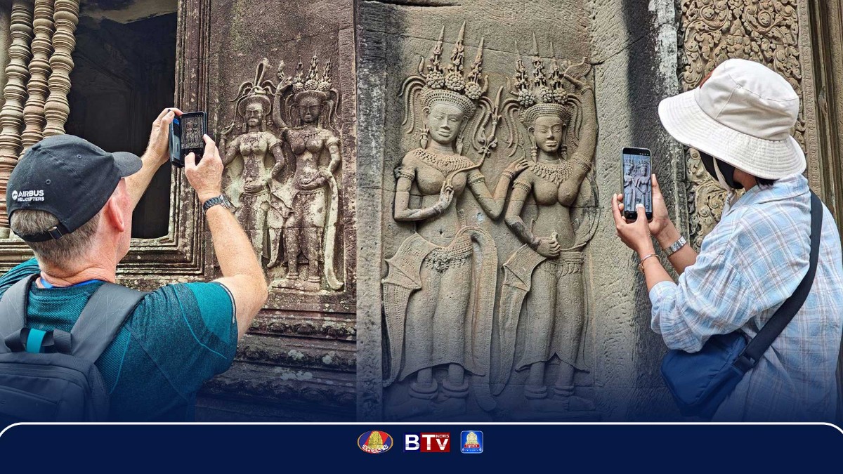 ចម្លាក់ទេពអប្សរនៅប្រាសាទអង្គរ មានអាយុកាលជិត១ពាន់ឆ្នាំ បង្អួតសម្រស់ជាមួយភ្ញៀវទេសចរ