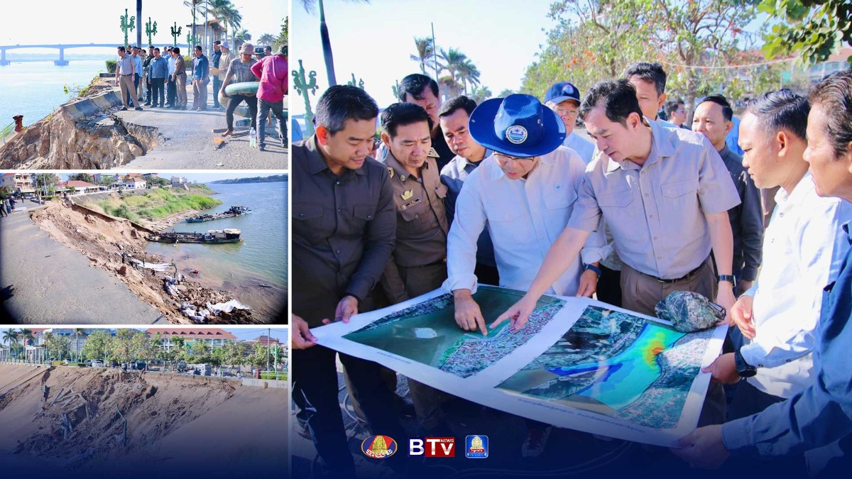 រដ្ឋមន្ត្រីក្រសួងធនធានទឹក និងអភិបាលខេត្តកំពង់ចាម ចុះពិនិត្យលក្ខណៈបច្ចេកទេសដើម្បីទប់ស្កាត់ការបាក់ស្រុតច្រាំងទន្លេមេគង្គក្នុងក្រុងកំពង់ចាម
