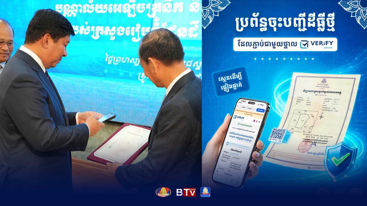 វិញ្ញាបនបត្រសម្គាល់ម្ចាស់អចលនវត្ថុទម្រង់ថ្មី មានភ្ជាប់ជាមួយ QR Code របស់ថ្នាល verify.gov.kh ធានាបាននូវភាពងាយស្រួល ឆាប់រហ័ស និងសុវត្ថិភាពទិន្នន័យខ្ពស់