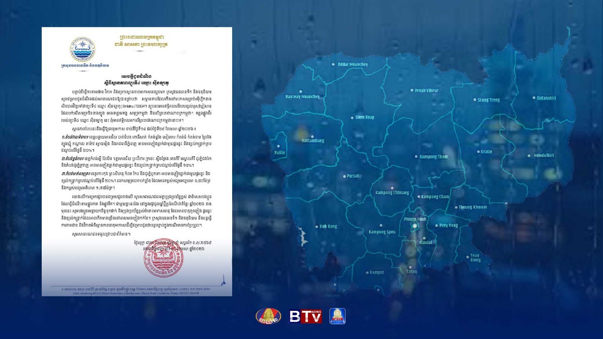 រាជធានី-ខេត្តមួយចំនួននៅកម្ពុជា អាចនឹងមានភ្លៀងធ្លាក់ ជាមួយផ្គររន្ទះ និង​ខ្យល់​កន្ត្រាក់​ចាប់​ពី​ថ្ងៃ​ទី​១៤ ដល់ថ្ងៃទី២៥ ខែមេសា ដោយសារឥទ្ធិពលព្យុះ «ស៊ីនឡាគូ»